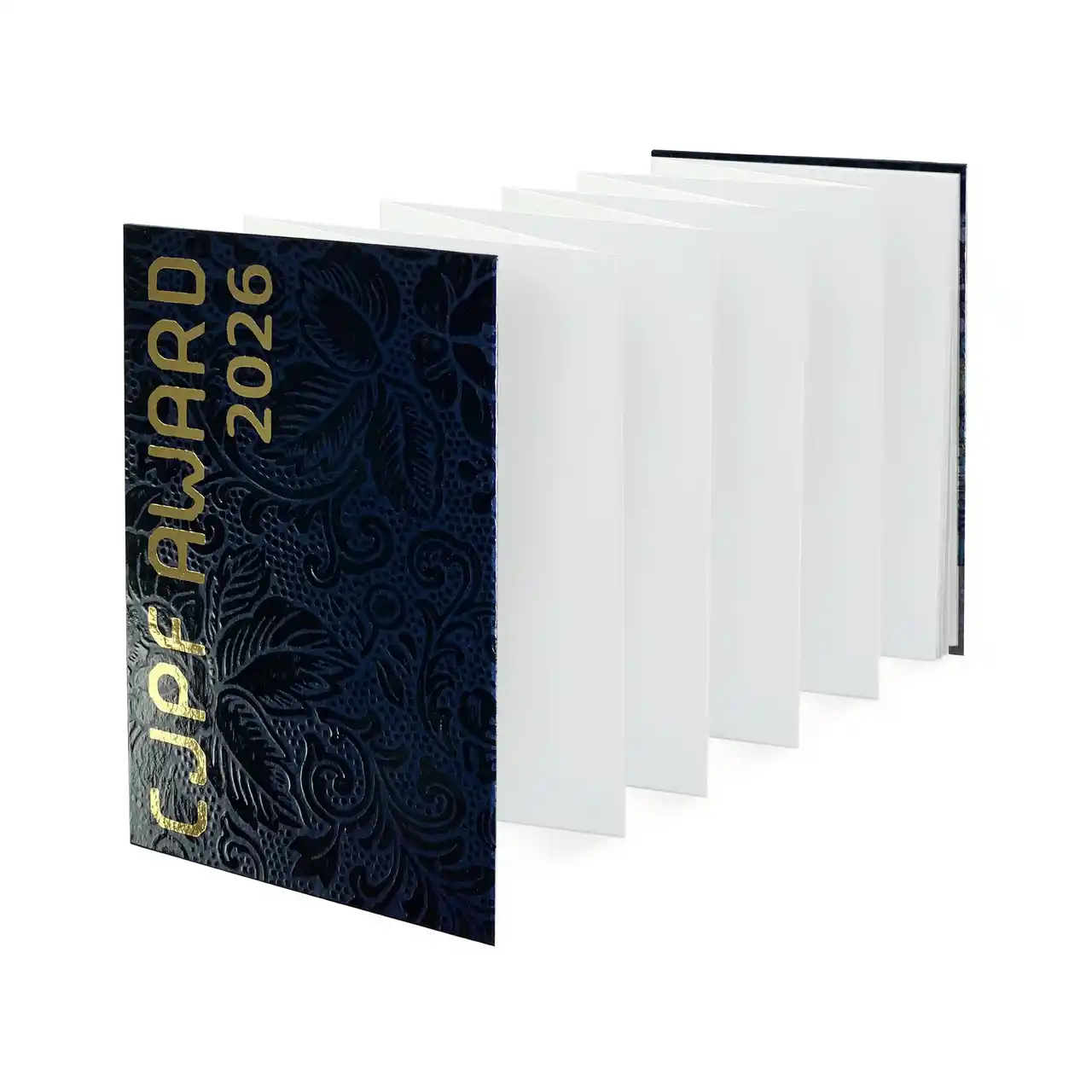 御朱印帳の「巡る・記す」という体験に着想を得て、日本のプロジェクトを記録し巡る新しい記念品を制作しました 。本製品は、受賞作品の熱量をデジタルアーカイブとして保存し、内蔵されたNFCタグを通じて、いつでもスマートフォンで閲覧できる仕組みを備えています。伝統の装いの中に、受賞の喜びを呼び出すインターフェースを組み込んだ「体験型」の記念品です。 |