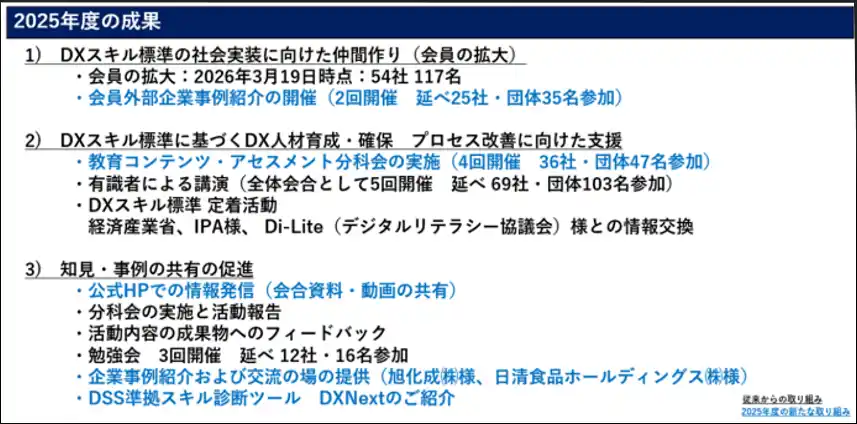DSMパートナーズは、デジタルスキル標準を企業や自治体において活用し、そこから得られた知見やベストプラクティスを共有していく自主的なコミュニティとして2023年4月に立ち上げられました。 |