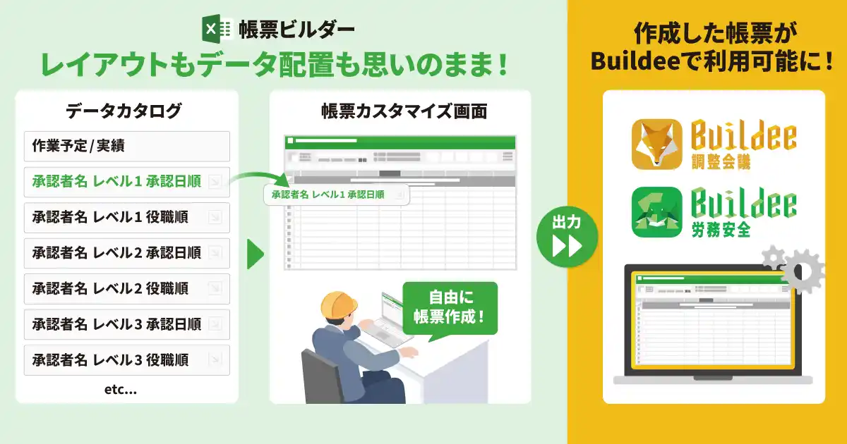 株式会社リバスタ(本社:東京都江東区、代表取締役:高橋巧、以下 当社)は、建設現場施工管理サービス「Buildee(ビルディー)」において、任意のExcel帳票を取り込み、データを紐づけて帳票テンプレートを作成・編集できるオプションサービス「帳票ビルダー(以下 本サービス)」の正式提供を2026年4月1日より開始しました。 |