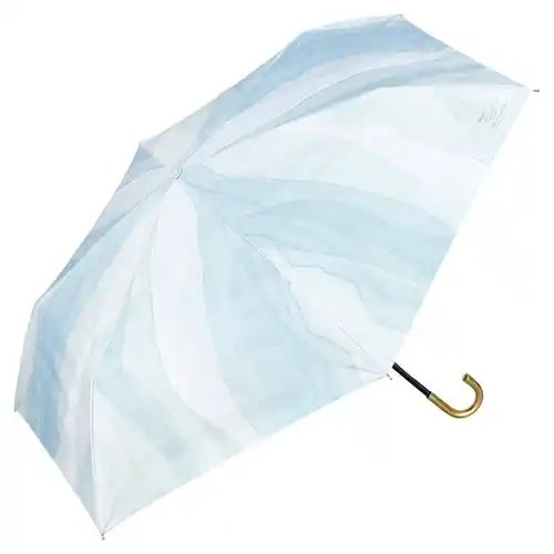 水彩絵の具で描いたような柄が魅力の日傘。落ち着いた色合いで大人っぽい雰囲気に仕上げ、ゴールドのロゴシルクプリントとゴールド合皮の手元が上品な輝きを添えます。 |