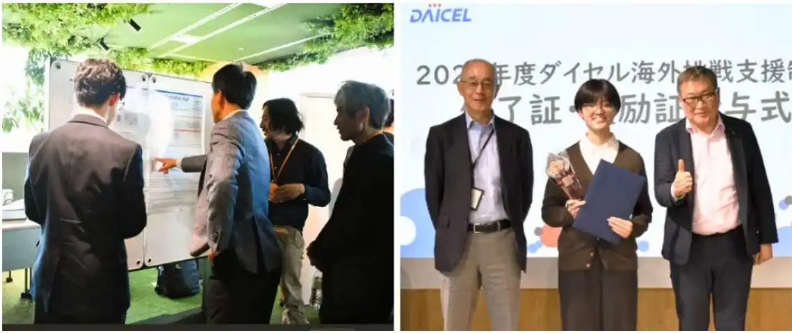 株式会社ダイセル(本社:大阪市北区、代表取締役社長:榊 康裕)は、2026年3月17日に「2025年度ダイセル高校生海外挑戦支援制度」に採択された海外挑戦・研究成果発表会および表彰式を東京本社で開催しました。本制度は未来のイノベーションを担う次世代研究者の育成と価値共創を目的として今年度から開始した、海外での研究発表や短期留学などに挑戦する中高生を対象とした給付型支援制度です。 |