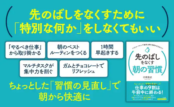 新刊書籍『先のばしをなくす朝の習慣』(著者:印南 敦史)を4月17日(金)に発売いたします。