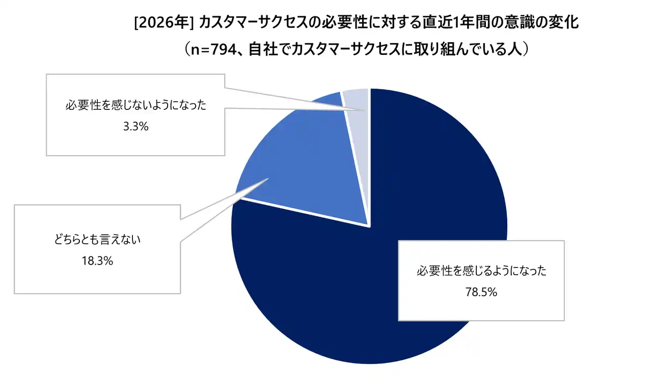 図1:[2026年] カスタマーサクセスの必要性に対する直近1年間の意識の変化(n=794、自社でカスタマーサクセスに取り組んでいる人) |