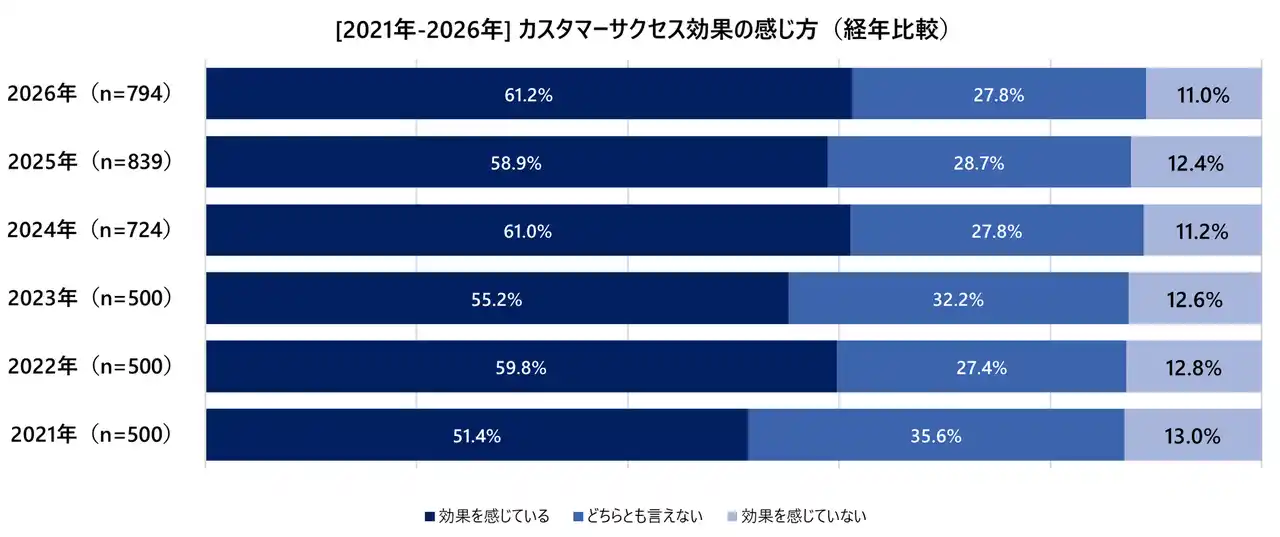 図5:[2021年-2026年] カスタマーサクセス効果の感じ方(経年比較) |