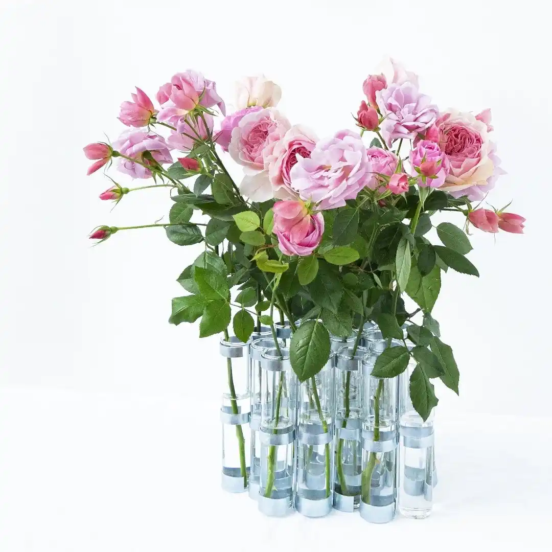 「四月の花器(エイプリルベース)」は、フランスのデザインユニット Tse & Tse associees によって生み出された、連結式のガラス花器です。1991年、デザイナーのシゴレーヌ・プレボワとカトリーヌ・レヴィによって制作され、現代デザインを代表する象徴的な作品のひとつとなりました。 |