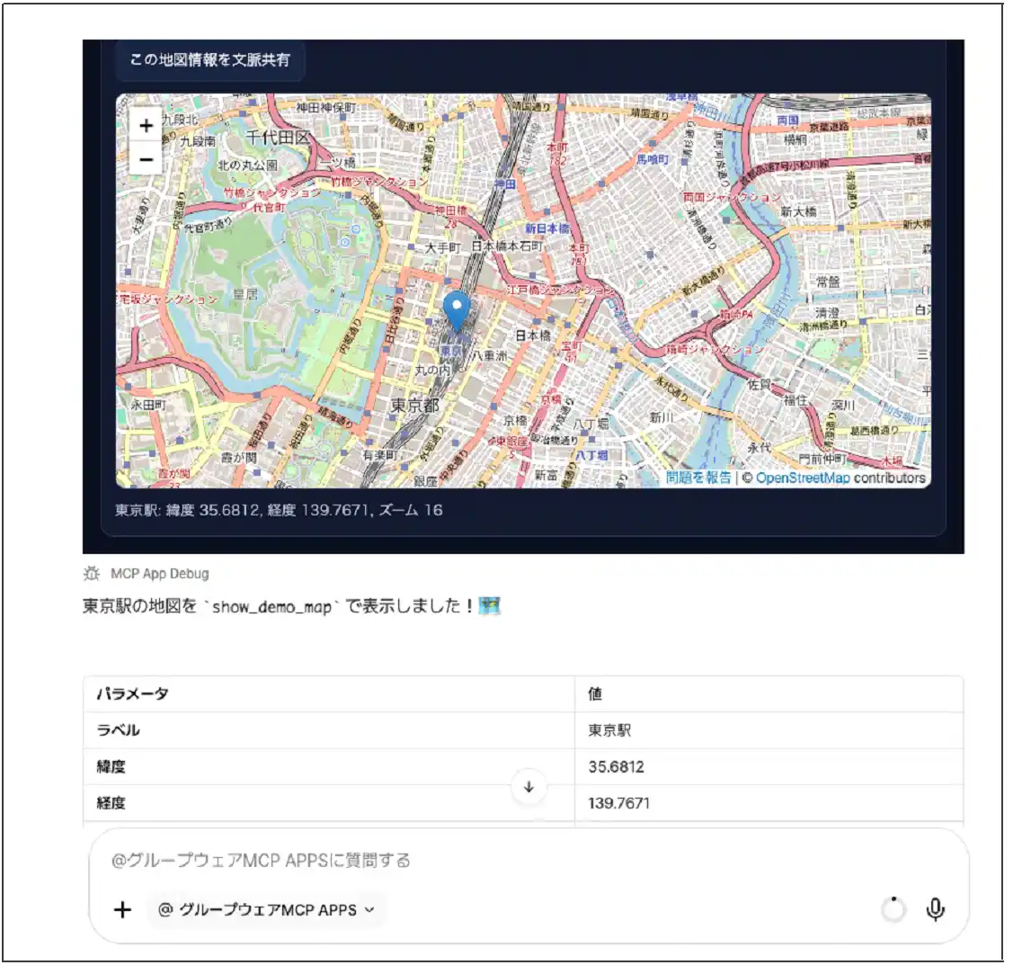 新たな接続規格「MCP Apps」への対応により、外部ツール(MCPサーバー)の「専用操作画面(UI)」をmitoco Buddyのチャット内に直接表示・操作できるようになりました。 |