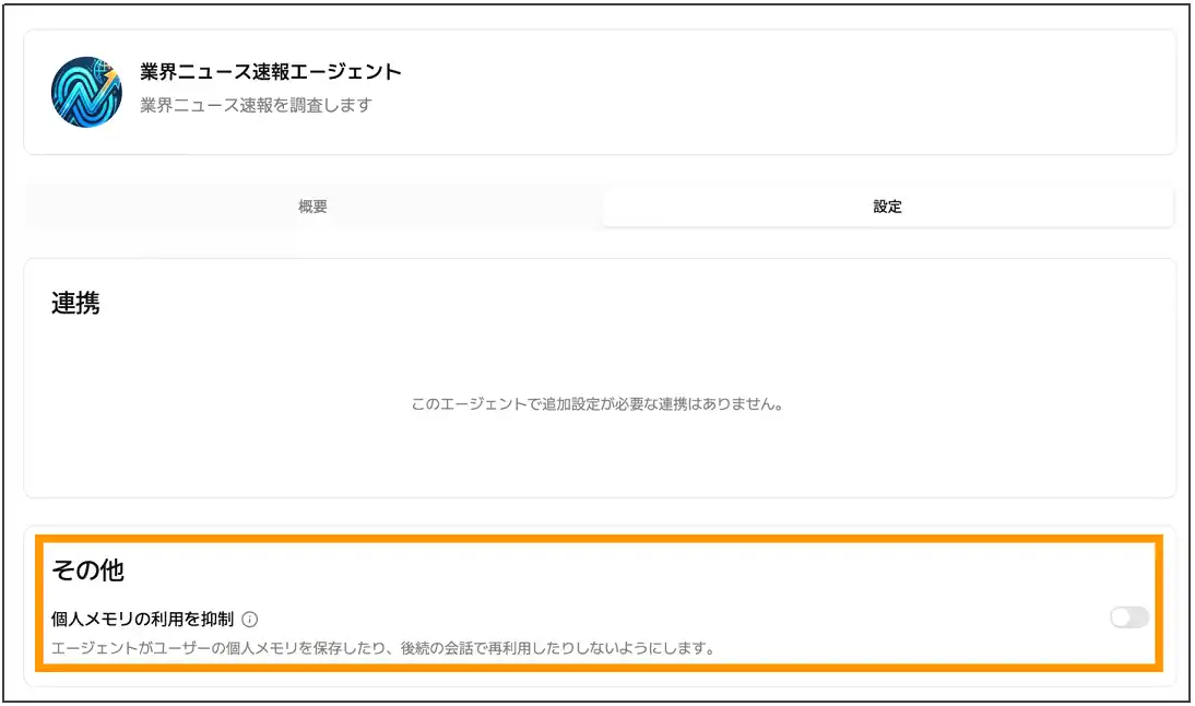 エージェントが過去の対話内容やユーザーの好みを記憶し、一人ひとりに最適な回答を生成する「Long-Term Memory(パーソナライゼーション)」に対応しました。 |