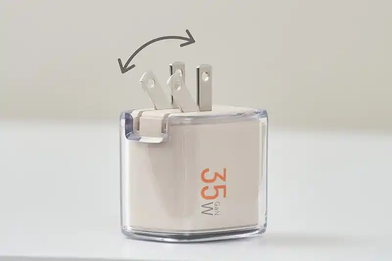 折りたたみ式のスイングプラグを採用し、 |
