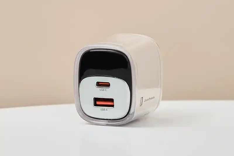 透明感のある美しいボディが特徴的なUSB急速充電器 |