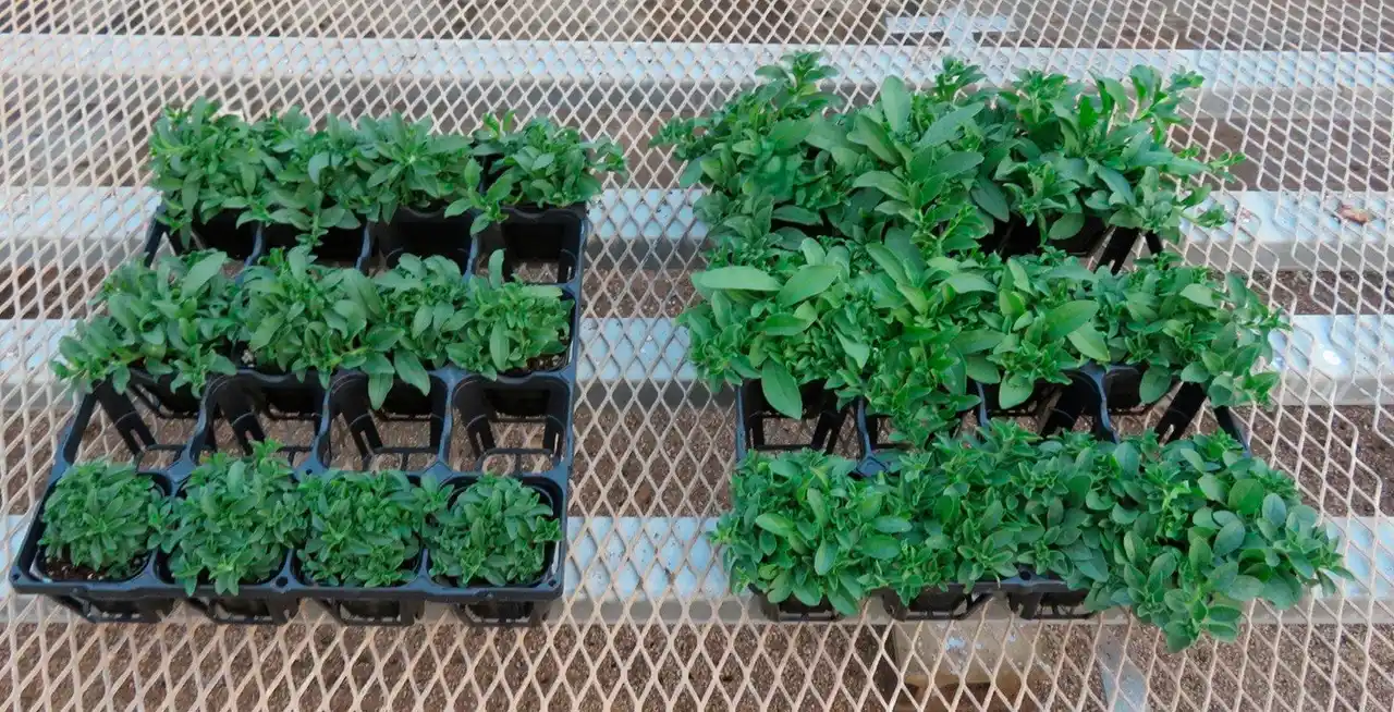 ピートモス使用(従来)のサフィニア苗 Teamoss使用のサフィニア苗 |