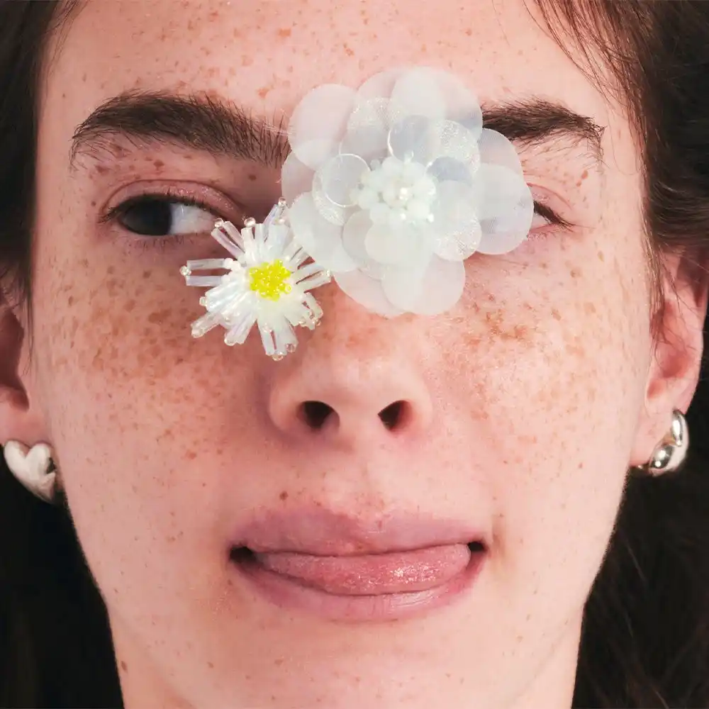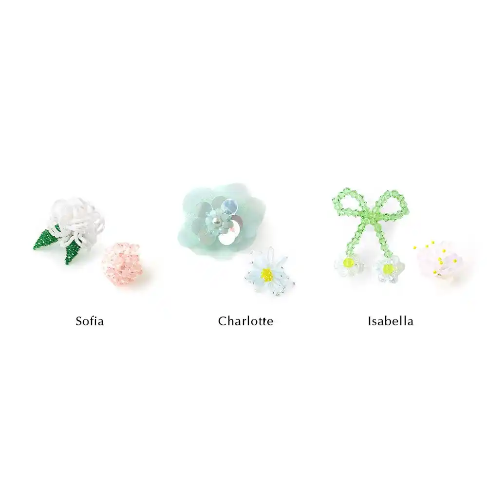 さらに、初夏に映えるピンクやブルーのフラワーパーツは、思わず写真を撮りたくなるようなキャッチーなデザイン。組み合わせによって“可愛い”にも“モード”にも変化しスタイリングの一部として楽しめるのも特徴です。 |