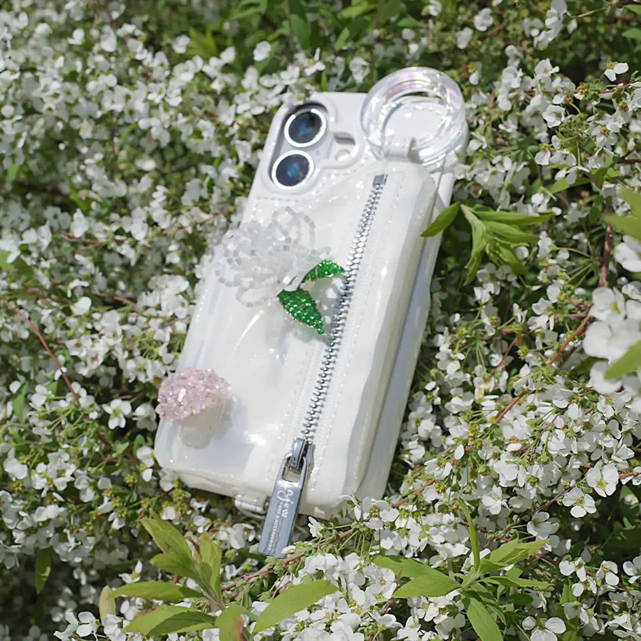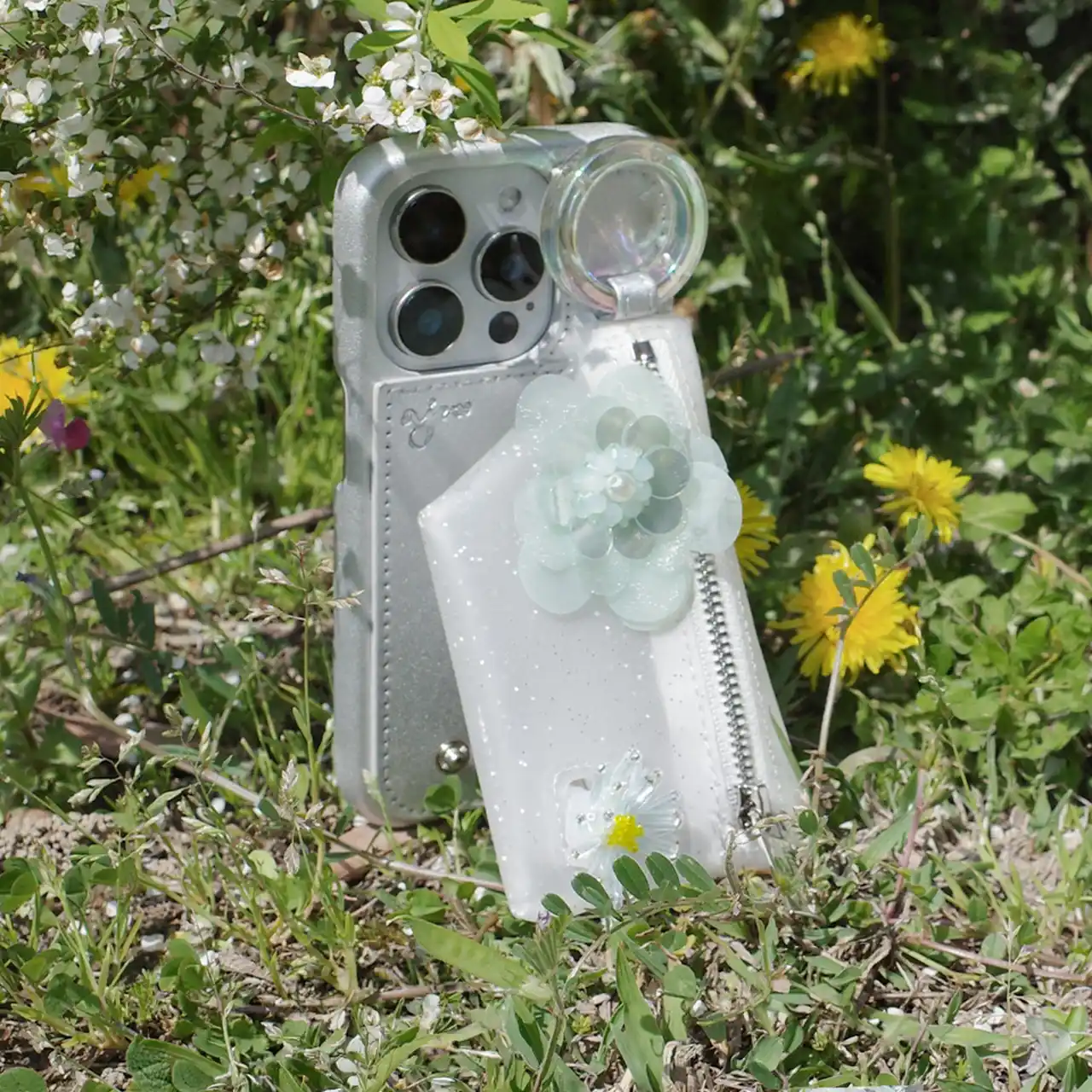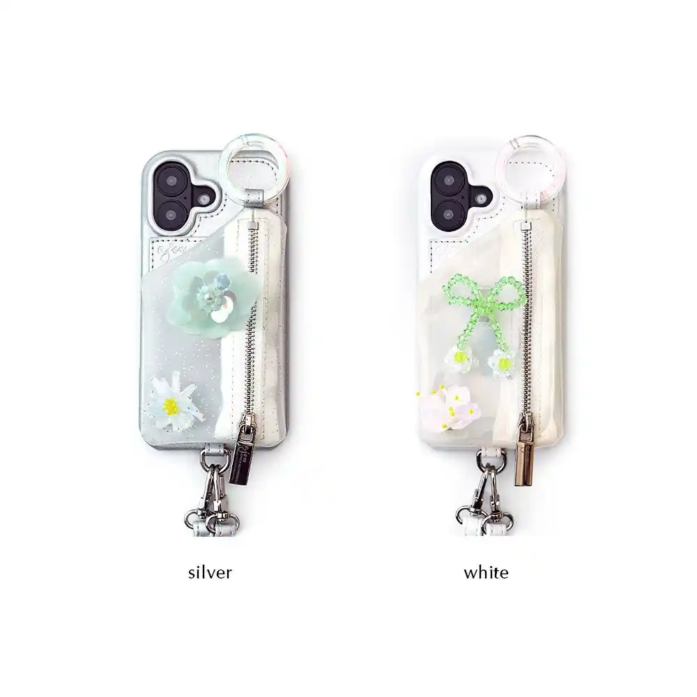 ケース(white・silver)に、好きなフラワーパーツを組み合わせることで、その日の気分やスタイリングに寄り添う自分だけのデザインが完成します。 |