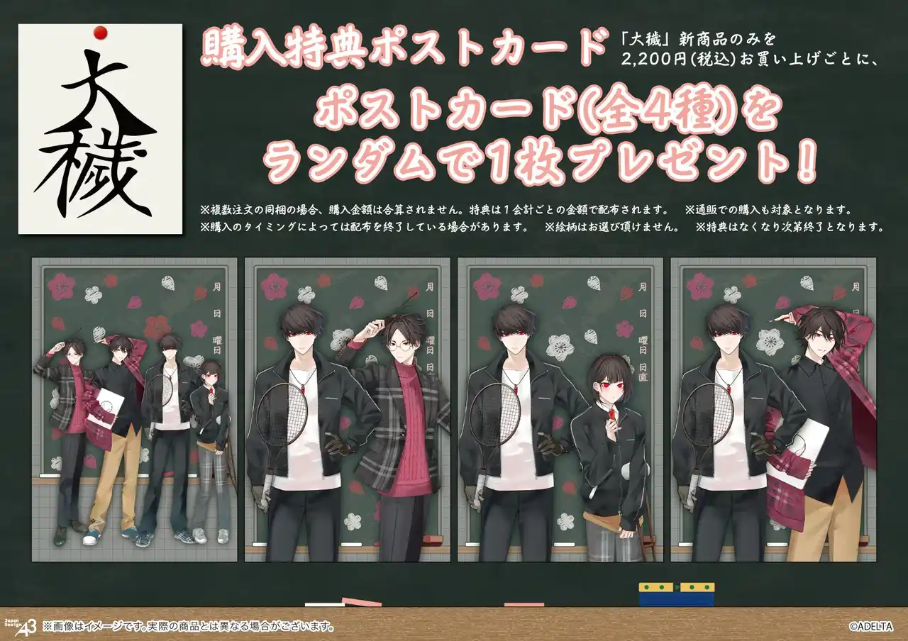 【株式会社A3】 BLゲーム『大穢』の新作グッズが登場!“学園風ver.”の描き下ろし&ミニキャライラストはファン必見!!