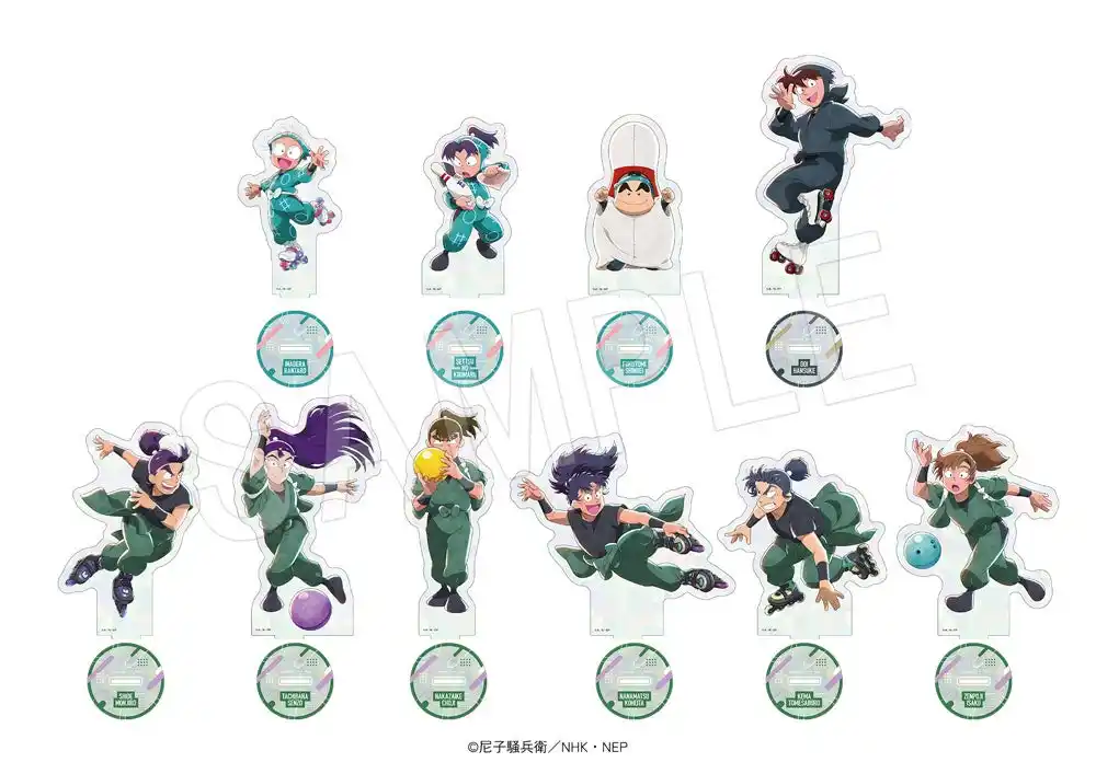 ボウリングやローラースケートを楽しむ乱太郎たち10名の新規描き下ろしイラストを使用した「アクリルフィギュアスタンド」や「ミニ缶バッジ付き マグネット缶キャラメル」のほか、カプセルトイの「フレークシール」やクレーンゲーム景品の「フェイスタオル」など、コラボならではの新作アイテムが登場! |