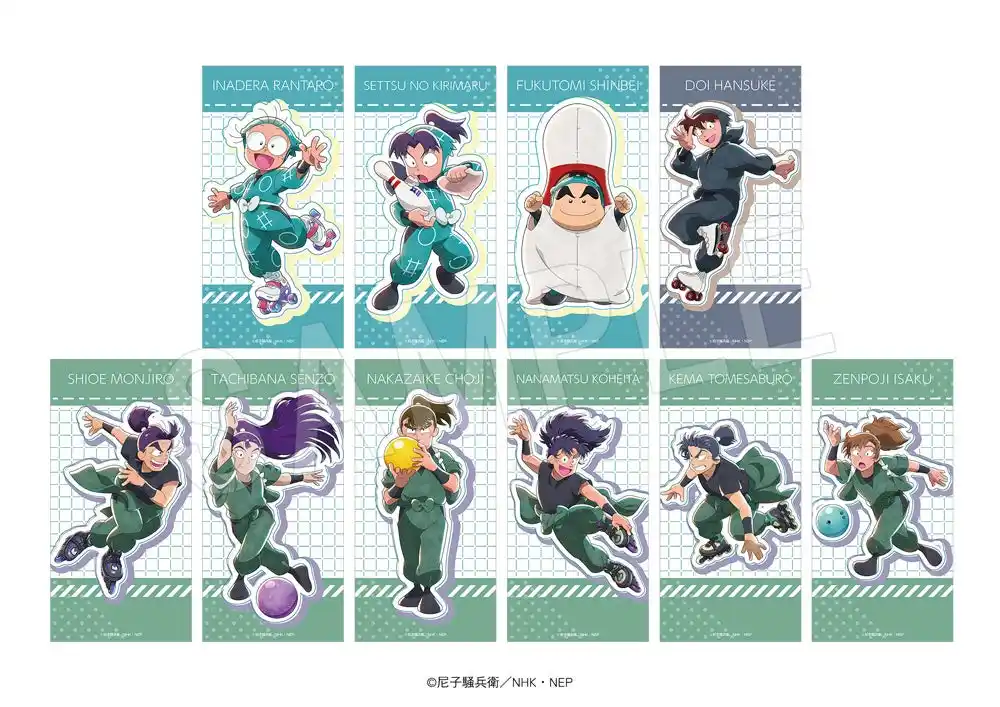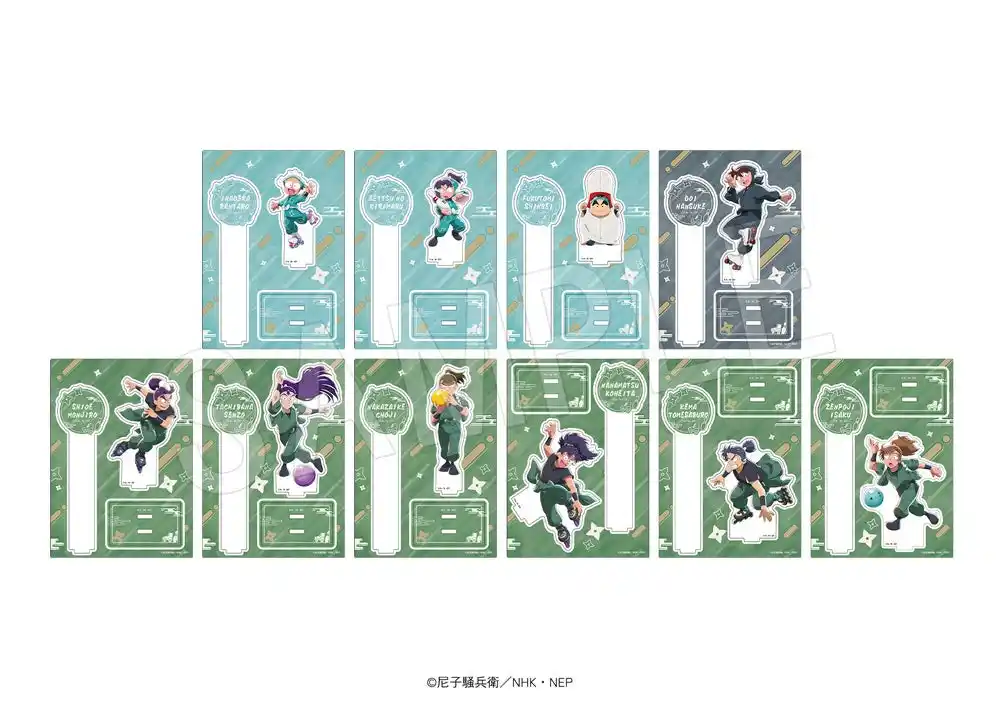 ラインナップ:猪名寺乱太郎、摂津のきり丸、福富しんべヱ、土井半助、潮江文次郎、立花仙蔵、中在家長次、七松小平太、食満留三郎、善法寺伊作 |