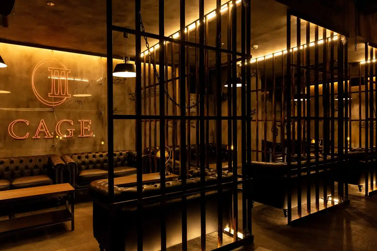 CAGEは、アメリカの監獄をモチーフにした無機質でダークな空間が特徴のシーシャラウンジです。 |