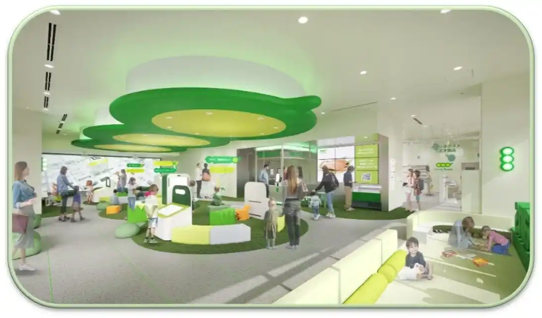 CFCで稼働するロボットの映像を放映するシアタールームや、当社の事業をブロックで再現した模型展示に加え、絵本を設置し、親子で安心してくつろげる空間などを提供していきます。 |