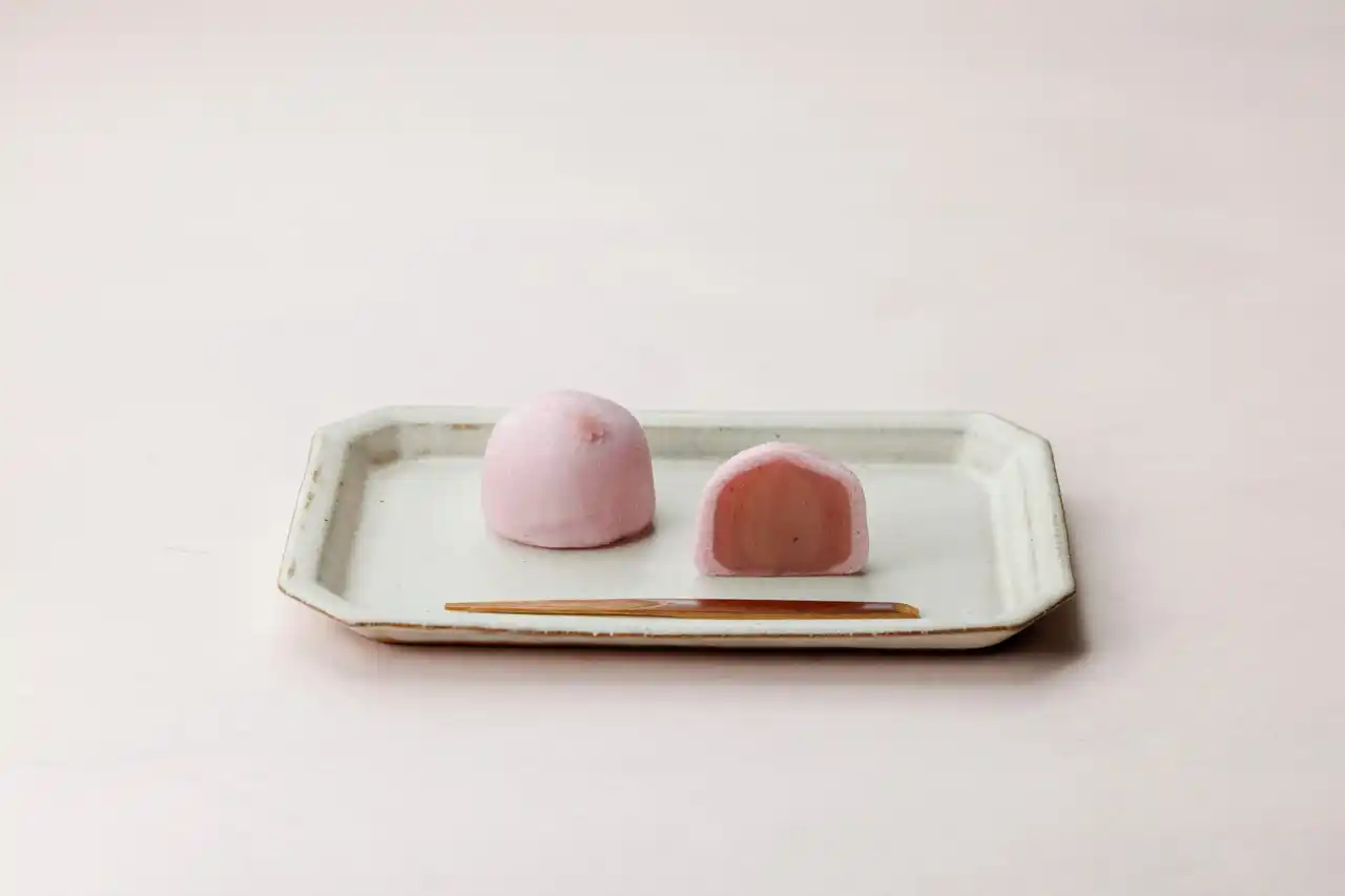 白餡に桜葉を加えた桜あんを、淡い桜色に染めたつくね芋の生地で包み蒸しあげました。表面に一片の桜の花びらを添えた、季節の薯蕷饅頭です。 |
