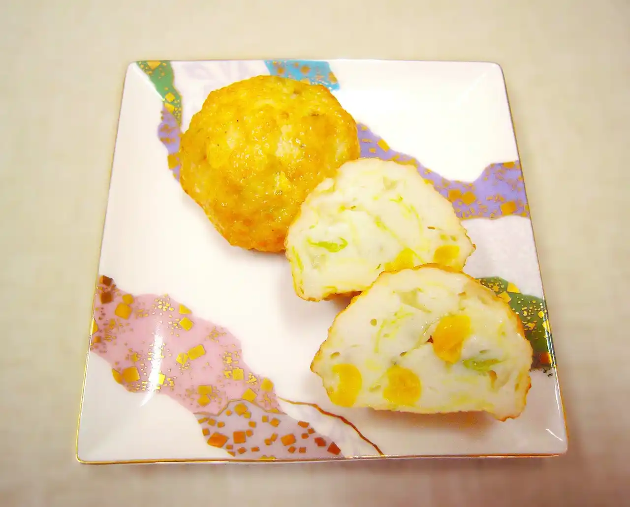 柔らかい春キャベツがたっぷり入ったヘルシーなさつま揚げです。 |