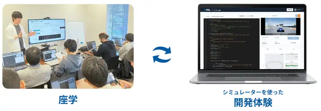 VMLは自動運転・制御系エンジニア育成用レース形式シミュレーターと自動車・モビリティ領域に特化した研修プログラムを提供しています。本研修は自動車メーカーからサプライヤーの技術者を中心に、幅広くご利用いただいております。 |