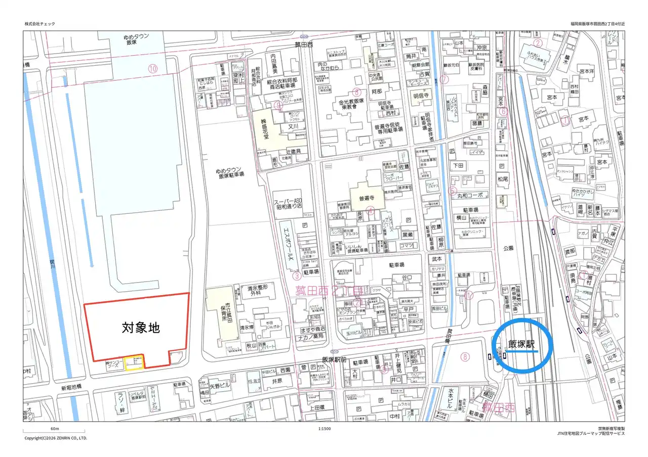 対象地は飯塚駅から徒歩約4分のゆめタウン飯塚隣接地 |