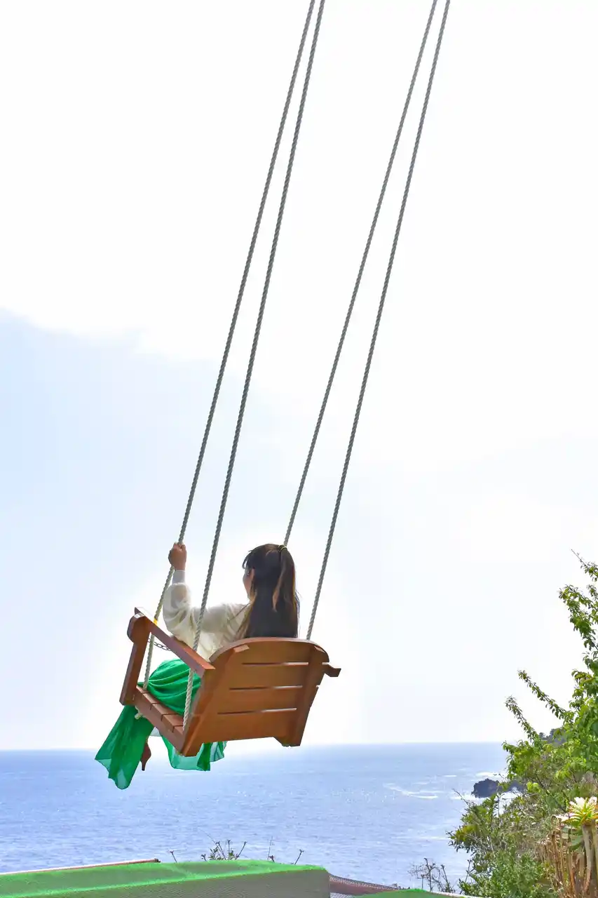 そしてもう一つは、「Lumiere Ocean Swing ―光と海のゆらぎ―」と題した高さ5mの巨大なブランコで、伊豆大島を望む大海原に向かって漕ぐファンタジックなスポットとなっております。どちらも勇壮な城ケ崎海岸の断崖絶壁の上に設置されているため、ほかでは体験できないスリルとともに、岬の周辺に広がる花々の美しさも同時に楽しむことができます。 |