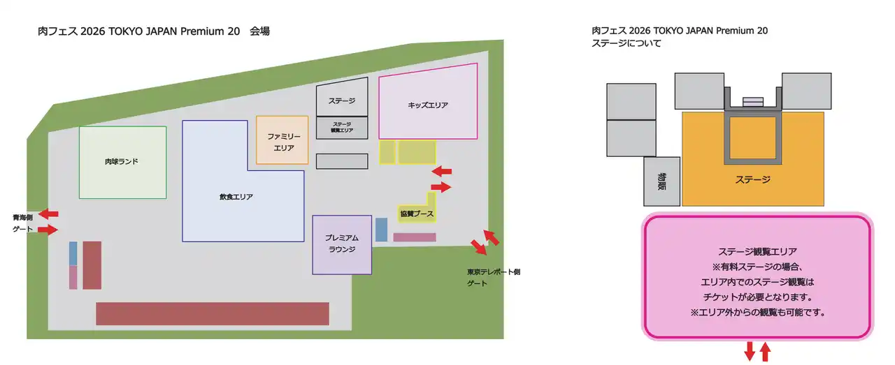 ※2026年の肉フェスステージはメイン会場内に併設。チケットはステージ前方エリアへの入場券となります。ステージの詳細は肉フェス公式からの続報をお待ちください。 |
