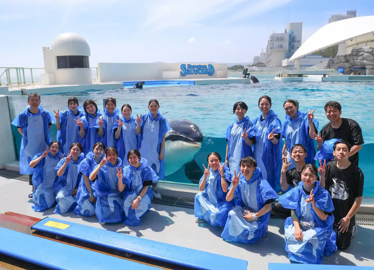 株式会社グランビスタ ホテル&リゾート(本社:東京都千代田区、代表取締役社長:荒井 幸雄)の基幹施設である、鴨川シーワールド(千葉県鴨川市、館長:勝俣 浩)では、2026年4月6日(月)に新たに20名の新入社員を迎えました。同日、参加を希望した新入社員が総支配人と一緒に、水族館ならではの入社式「シャチからの祝福」に参加しました。 |