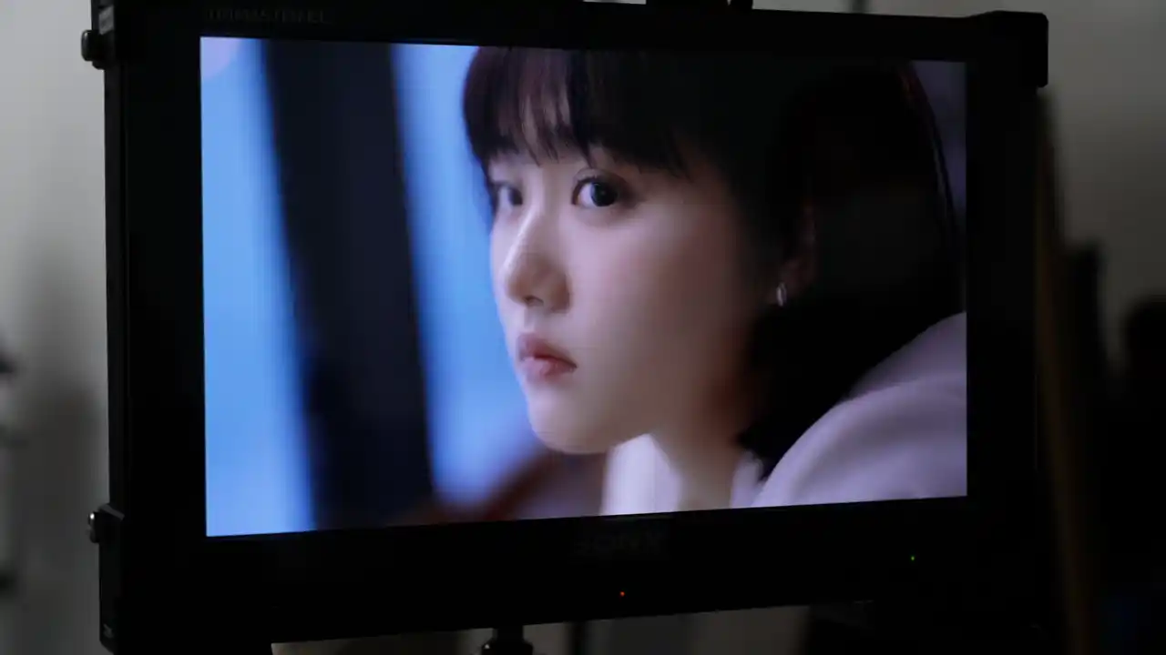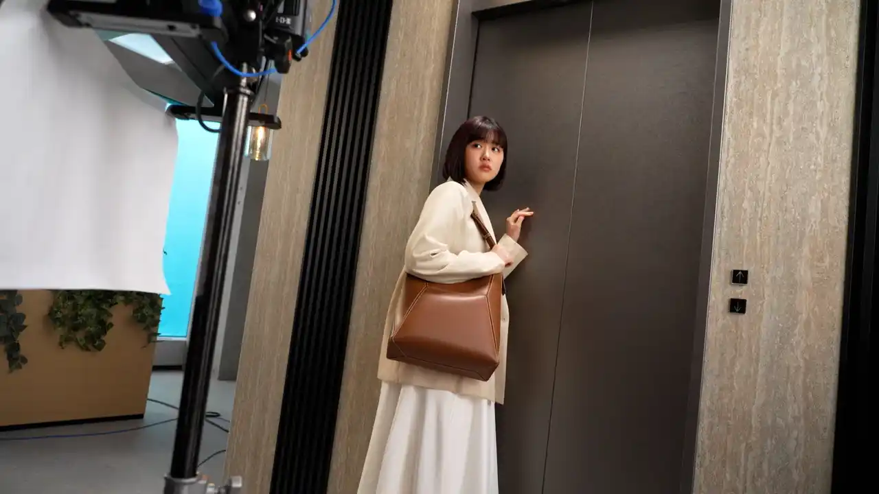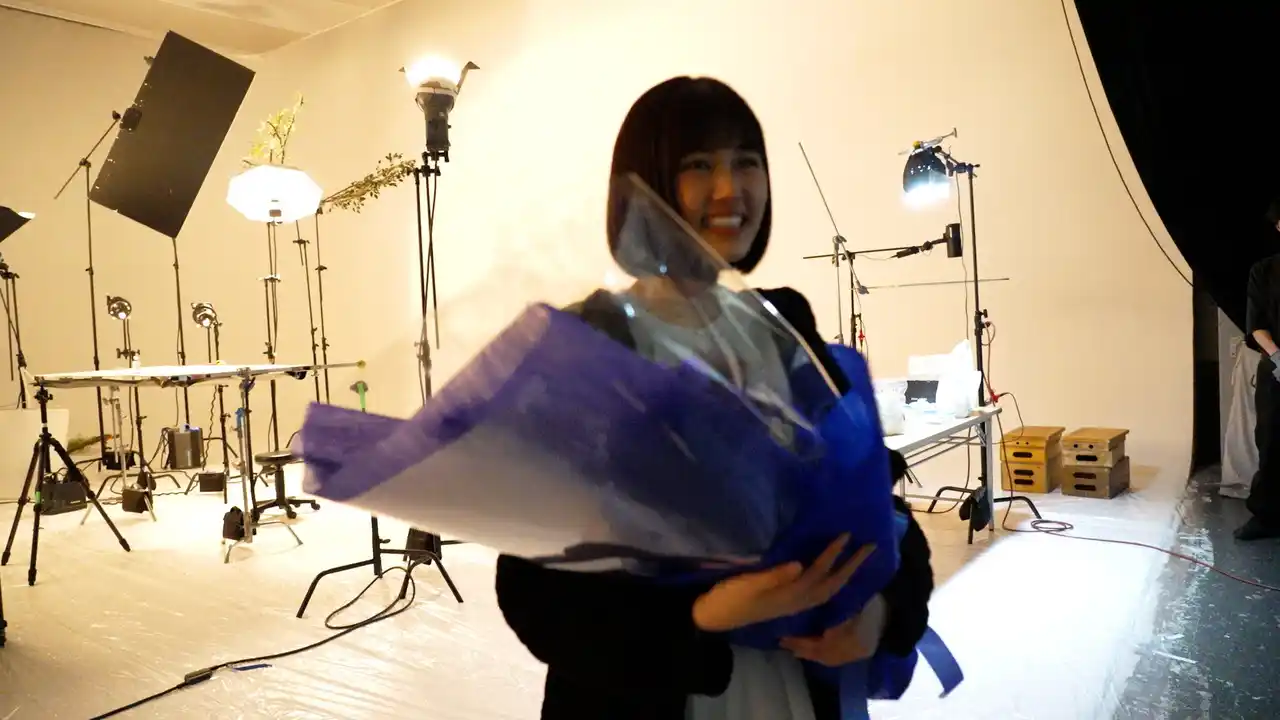 春らしいジャケット姿の原さんがスタジオに登場し、オフィスを思わせる空間から撮影がスタートしました。窓際のカウンターに腰掛け、外の雨を眺めながら、どこか気分が晴れなそうな表情を浮かべます。頬杖をつきながら、どんよりとした空を眺める原さん。撮影後すぐにモニターをチェックし、監督から表情のニュアンスについて説明を受けると、再びカメラ前へ。カメラを長回ししながら、視線や仕草を少しずつ変えていき、繊細な感情の変化を表現していきます。そんな原さんの気分に呼応するかのように、現場も静まり返った雰囲気に。雨音を思わせる水滴の音が聞こえてくるほどの静けさの中で、リアルな空気感のあるカットが生まれました。 |