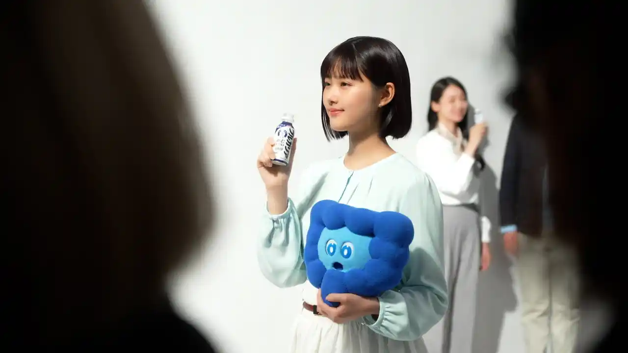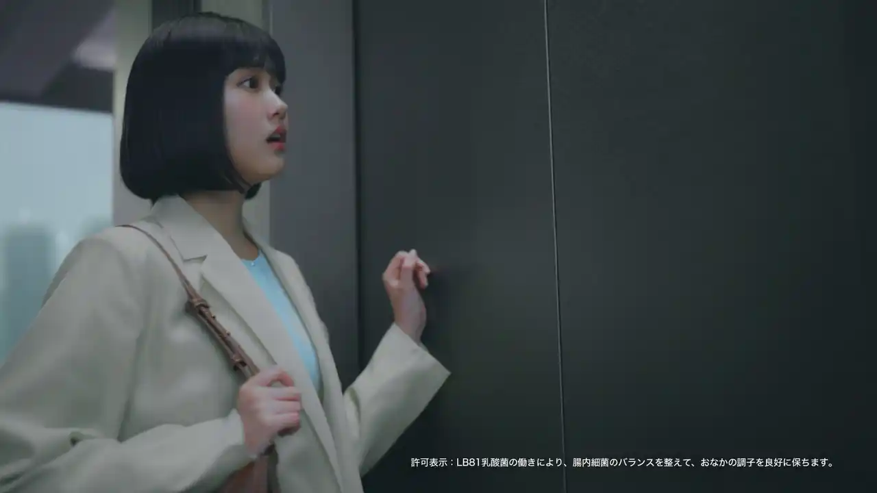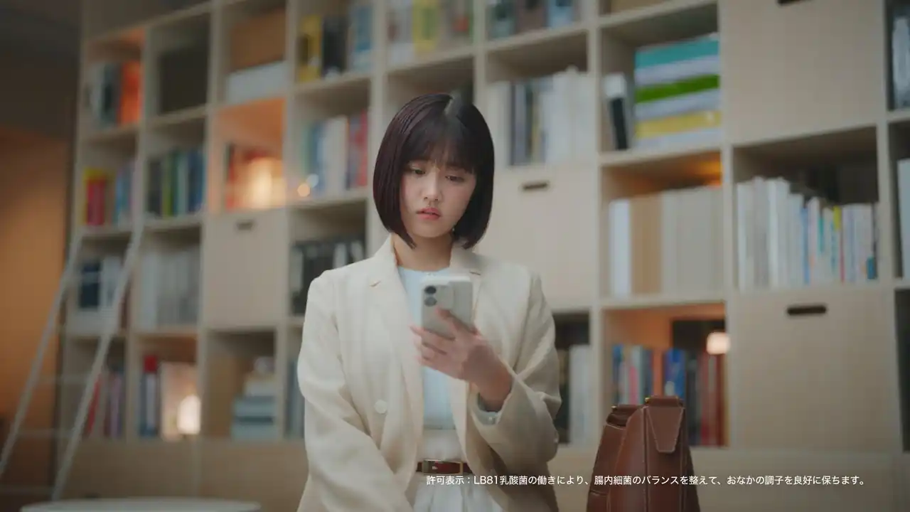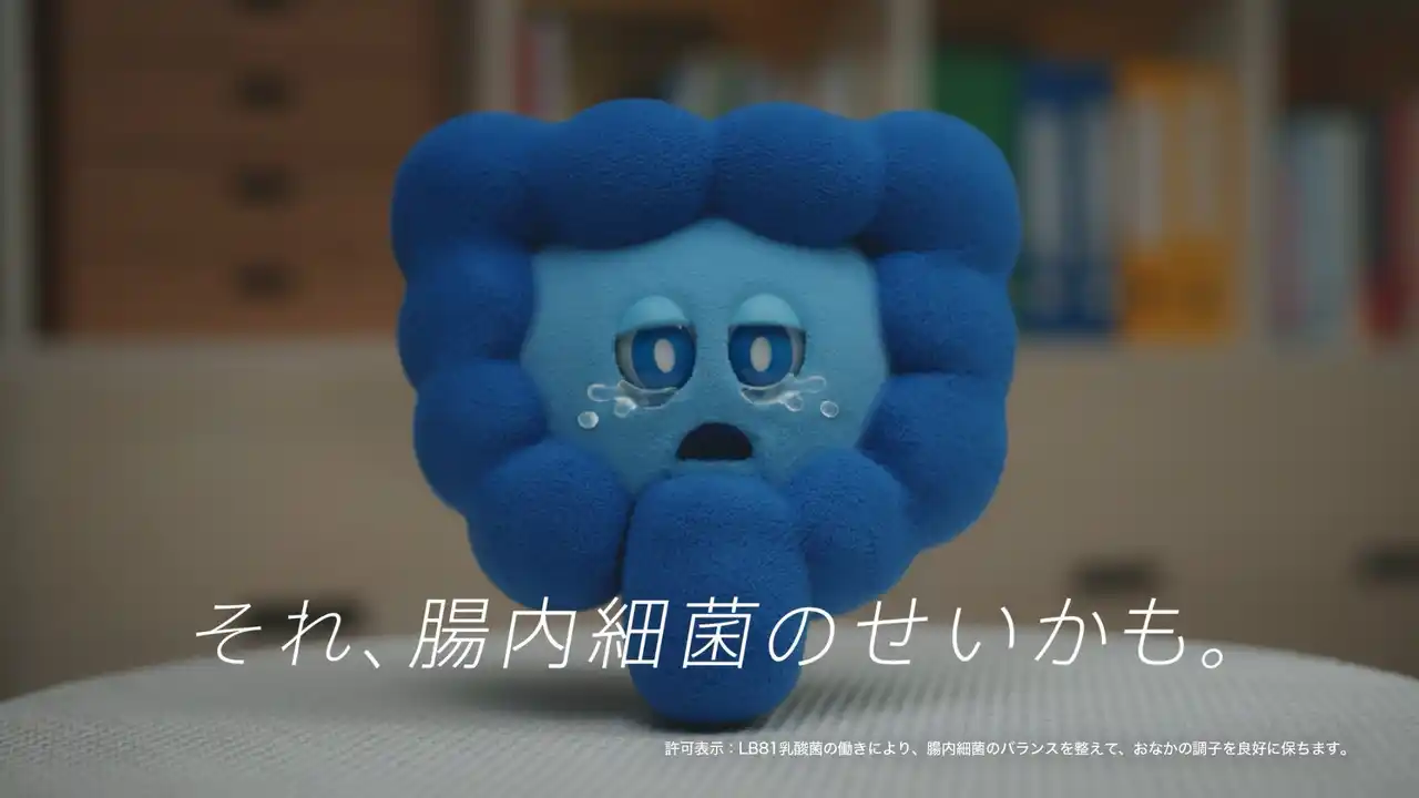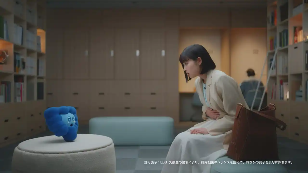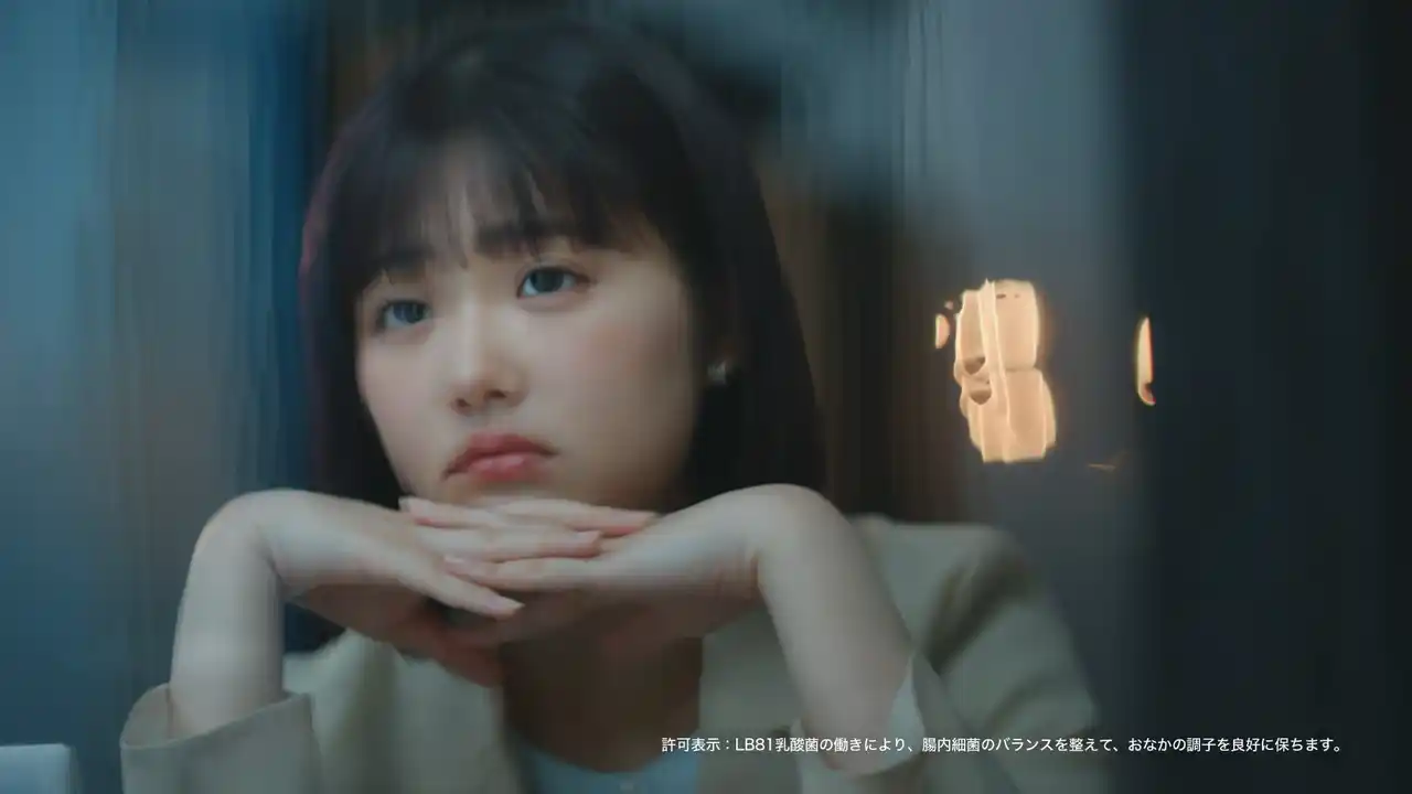 新CMでは、特定保健用食品として「腸内細菌のバランスを良好に保つ」効果が認められた本商品のベネフィットにちなみ、「腸内細菌のせいかもしれない」がコンセプト。原菜乃華さん演じる“仕事や日常でスッキリしなくてモヤモヤしてしまう女性”が、間宮くるみさんが声優を務める、腸のキャラクター「ちょぴ」との出会いを通じて、その原因が腸内細菌にあるかもしれないと気付き、商品を飲む姿が描かれています。前半の雨模様のオフィスでため息をつく等日常のシーンから一転、後半では木漏れ日の中で「ちょぴ」を抱きかかえてくつろぐ姿へ。原さんの等身大で自然体な表情と、不思議な相棒が見守る“ほっこり”した世界観が見どころです。 |