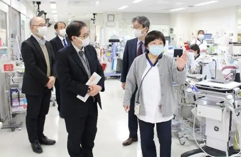 その後、鹿田キャンパスへ移動し、岡山大学病院を訪問。前田嘉信病院長らと面談を行いました。前田病院長から病院の経営状況について説明を受けた後、院内のIVRセンターおよびICU・CICUの集中治療室を視察しました。IVRセンターではIVR-CT室を訪れ、放射線科医師から、画像ガイド下で行う凍結療法について説明を受けるなど、先進的な医療技術への理解を深める機会を得ました。またICUでは、看護師長から医療設備や運用体制について説明を受けるとともに、小児の先天性心疾患患者の病床も視察し、本院における高度で専門的な医療提供体制を確認されました。 |