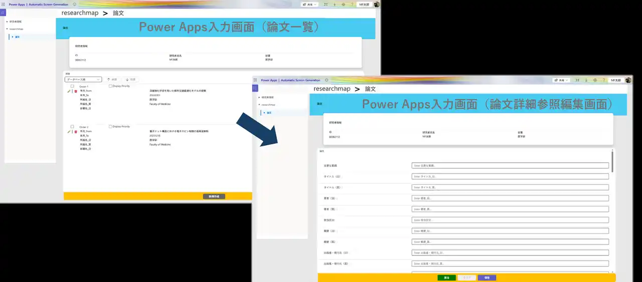 ●今回発表:Power Apps入力画面オプション (researchmap以外の追加データ項目登録)