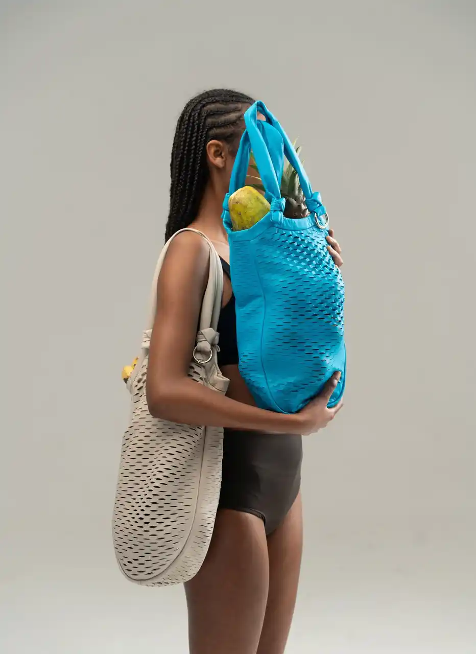 Mercato:アフリカ最大の市場Mercatoに着想を得て生まれたトートバッグ。細かなカットワークが施されたデザインは、羊革としては例外的な強度を持つエチオピアシープスキンだからこそ実現しました。Mercato S H20×W21×D6(cm) 46,200円 / Mercato L H36×W21×D6(cm) 63,800円 |