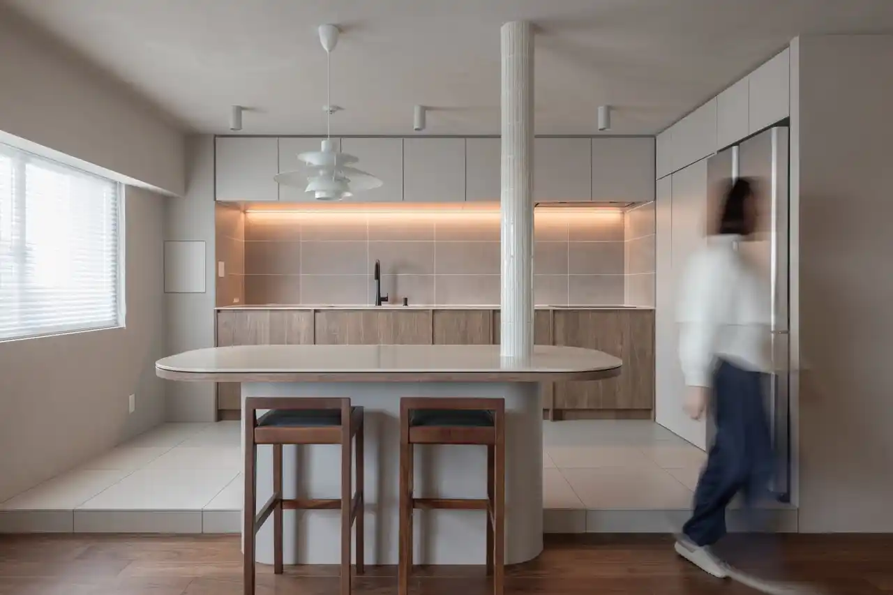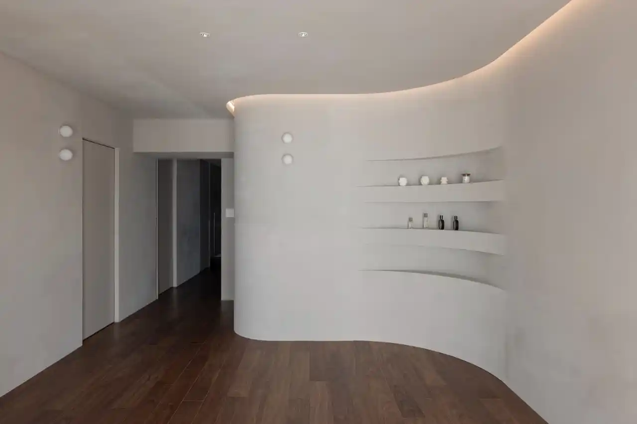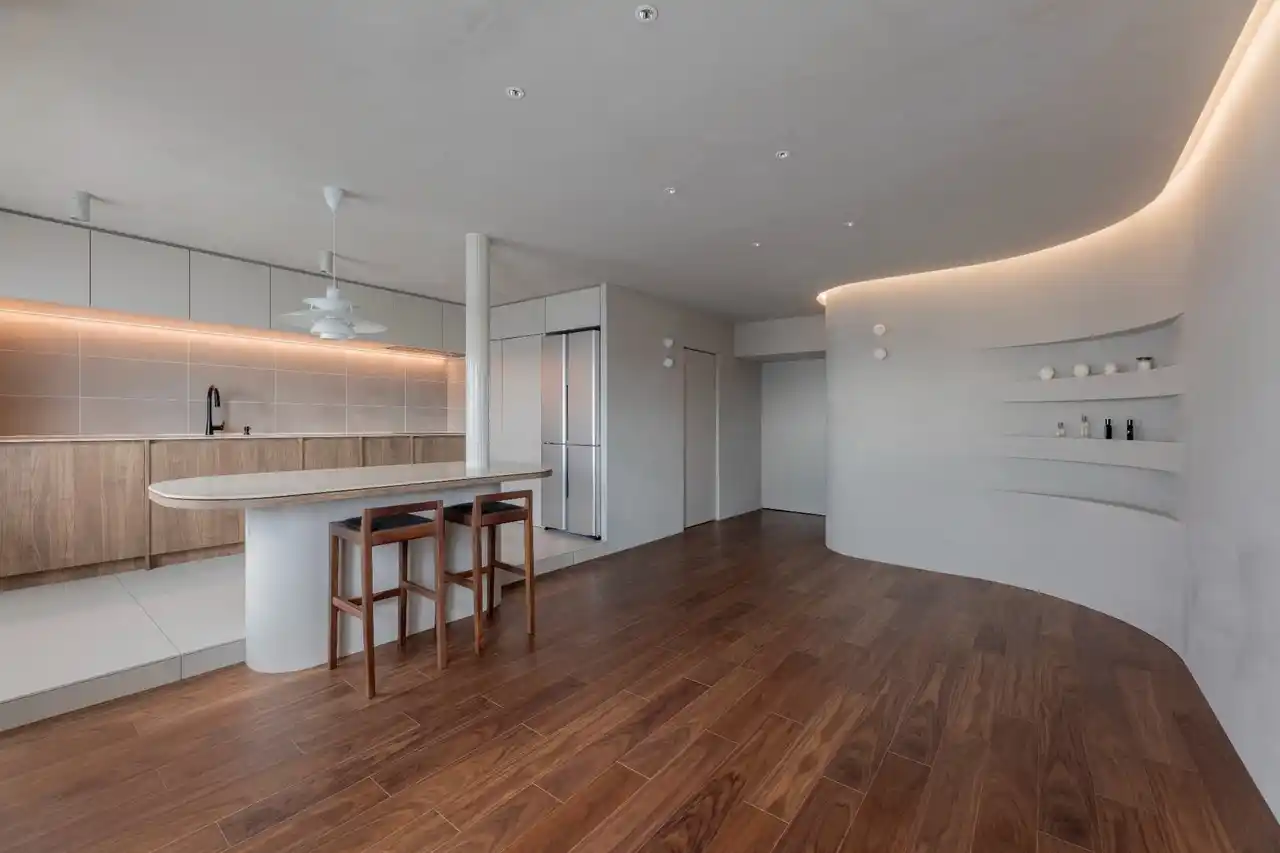 ■曲線の壁と間接照明がつくる、やわらかく開放的なLDK |