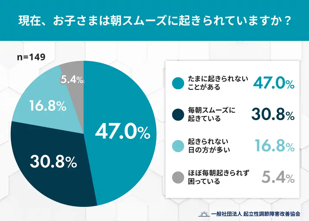 朝スムーズに起きられている子どもは約3割に留まり、約7割が何らかの起きづらさを抱えている