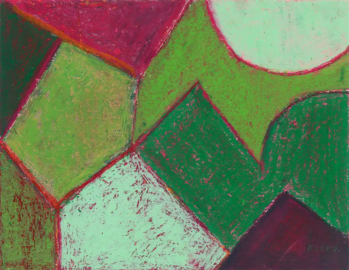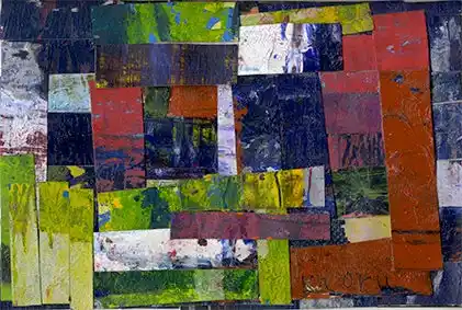 持ち、気に入った看板やロゴマークを見つけるとひたすら眺め続ける。日常生活のどこかで目にした好きなものを描いたかと思うと、描いたものを惜しみなく破り、さらにそれをコラージュして再生する。破壊と再生を繰り返すエネルギッシュな創作をする反面、描くものには丸みがありポップでコミカルな作品に仕上がる。描くスタイルも独特で、 |