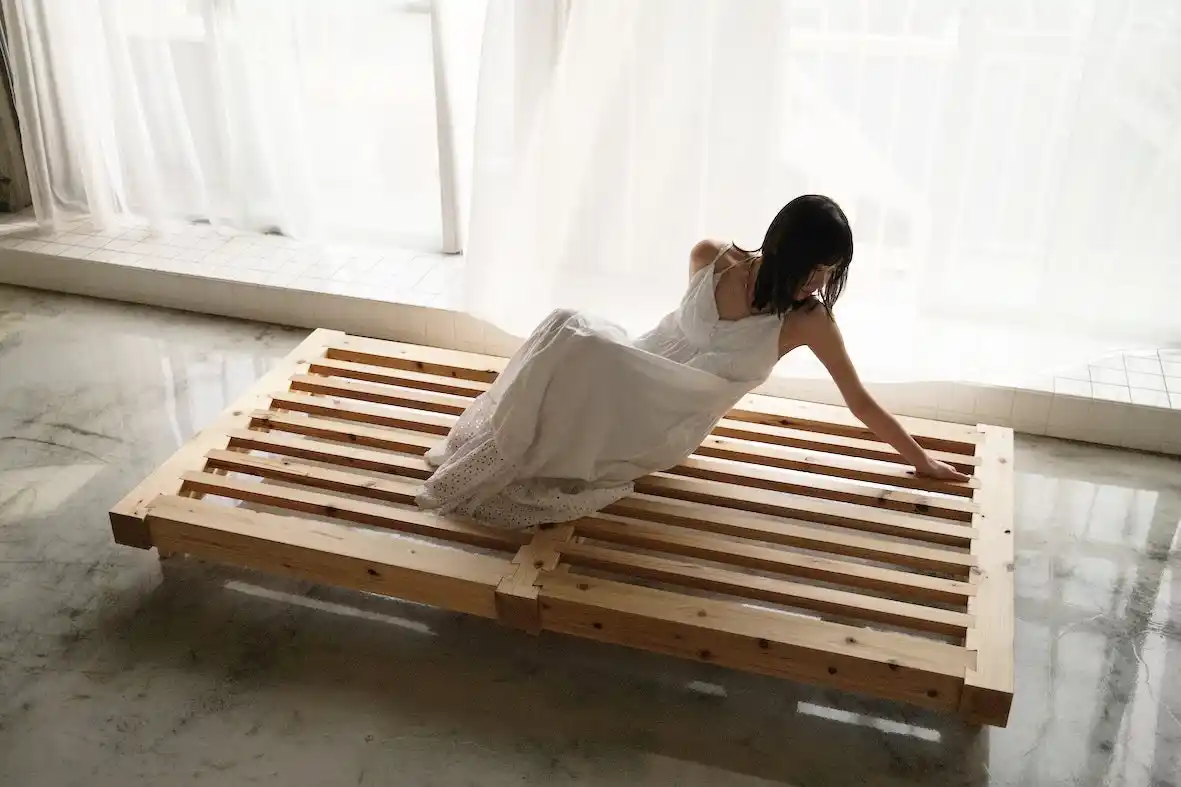RAFT(いかだ)は、かつて川の流れで木材を運んだ伝統の輸送手段です。引越しやライフスタイルの変化のたびに使い捨てるのではなく、分解・再組立を繰り返しながら場所から場所へ。いかだのように日常を乗せ、旅するベッドフレームです。 |