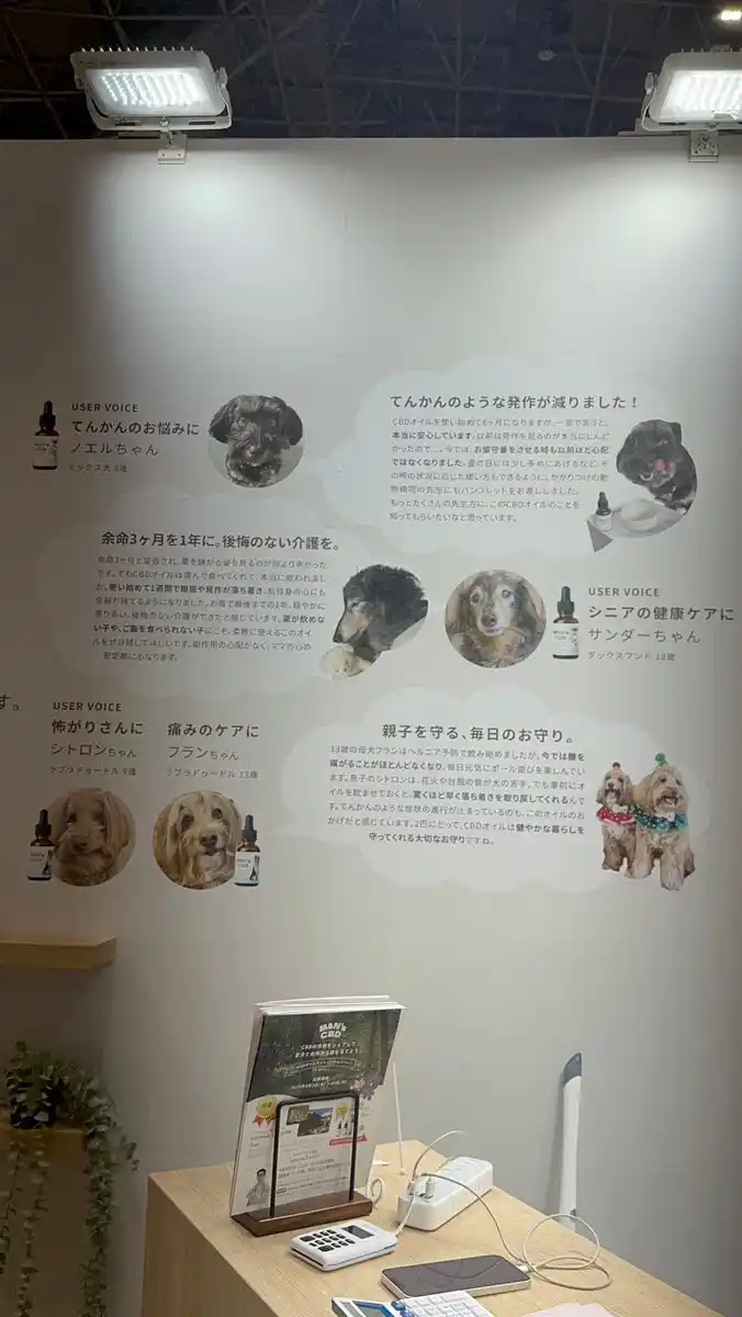 | 会場では、「まずは試してみたい」という来場者に加え、「ペットケアにCBDは有効なのか」「前から気になっていたが、相談してから使い始めたい」と情報を求めて来場される方も多く、商品のお試し体験&相談コーナーには常に人だかりができる盛況ぶりとなりました。 | |||