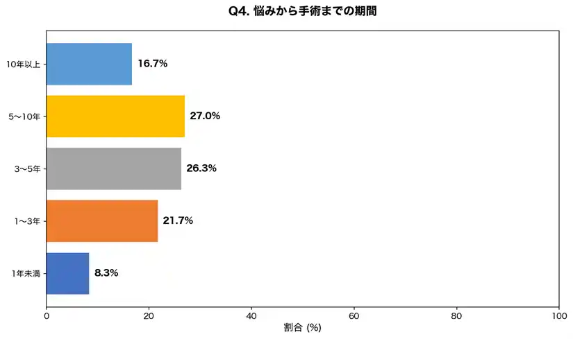 | 【調査結果】4割以上が「5年以上」悩みを抱えてから手術を決断 | |||||||||||||||||||||||||||
