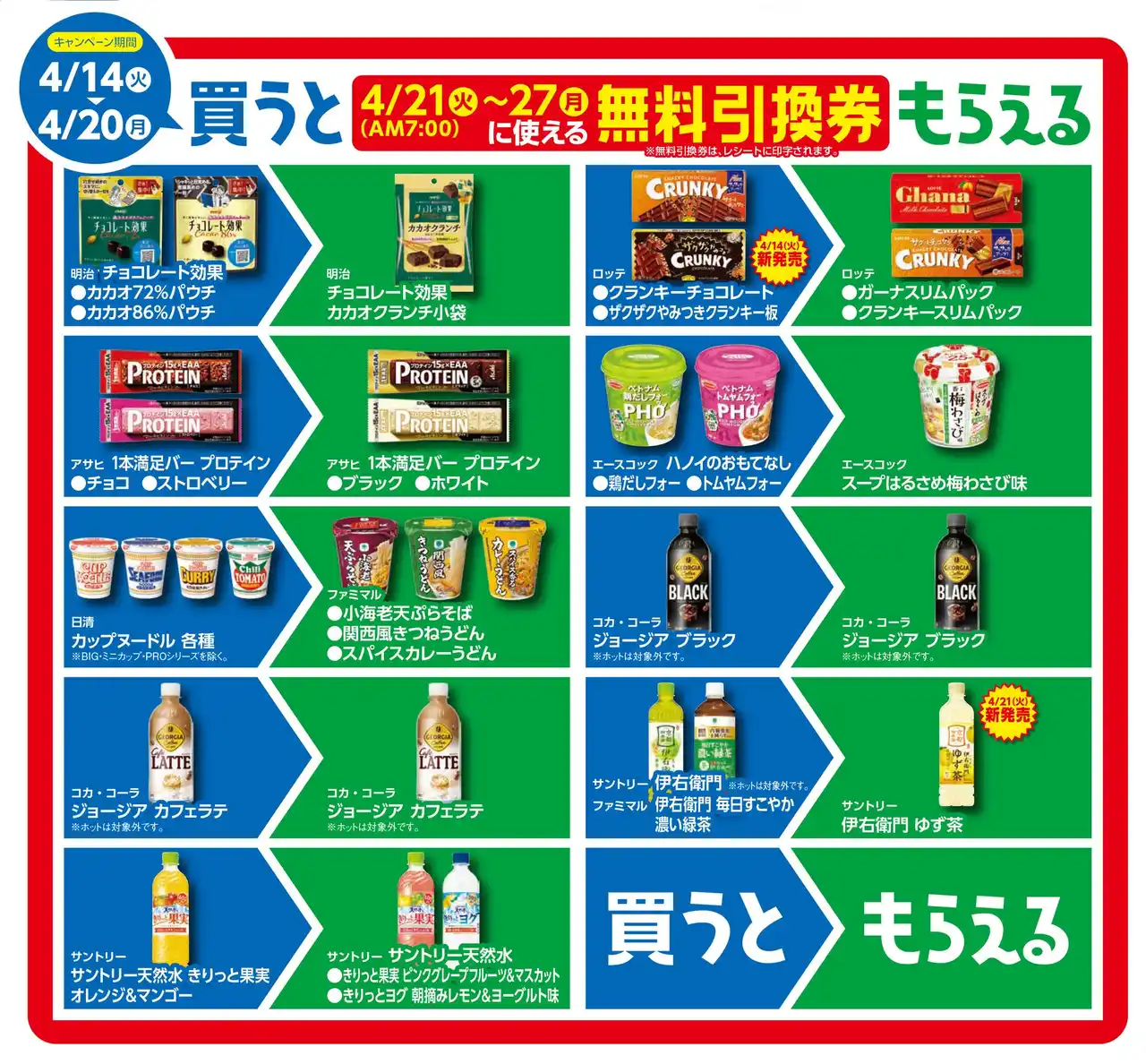 2026年4月7日(火)から4月27日(月)まで、期間中、対象商品を1個買うと対象の商品と引き換えられる無料引換券(レシートクーポン)を1枚プレゼントする、春の「1個買うと、1個もらえる」キャンペーンを実施いたします。 |
