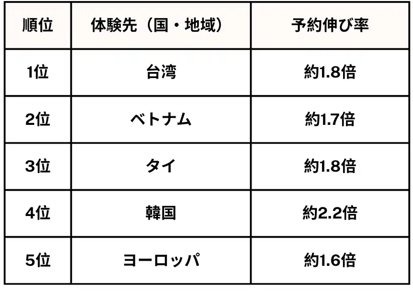 | ■ データ:2026年GW 海外体験先トップ5と「直近約10日間の予約伸び率」 | |||||||||||||||||||||