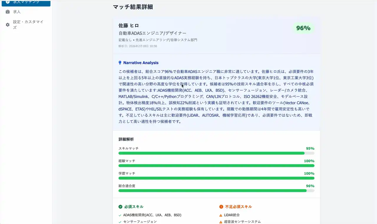 図1: 候補者と募集内容をマッチングさせ解析する際の画面 |
