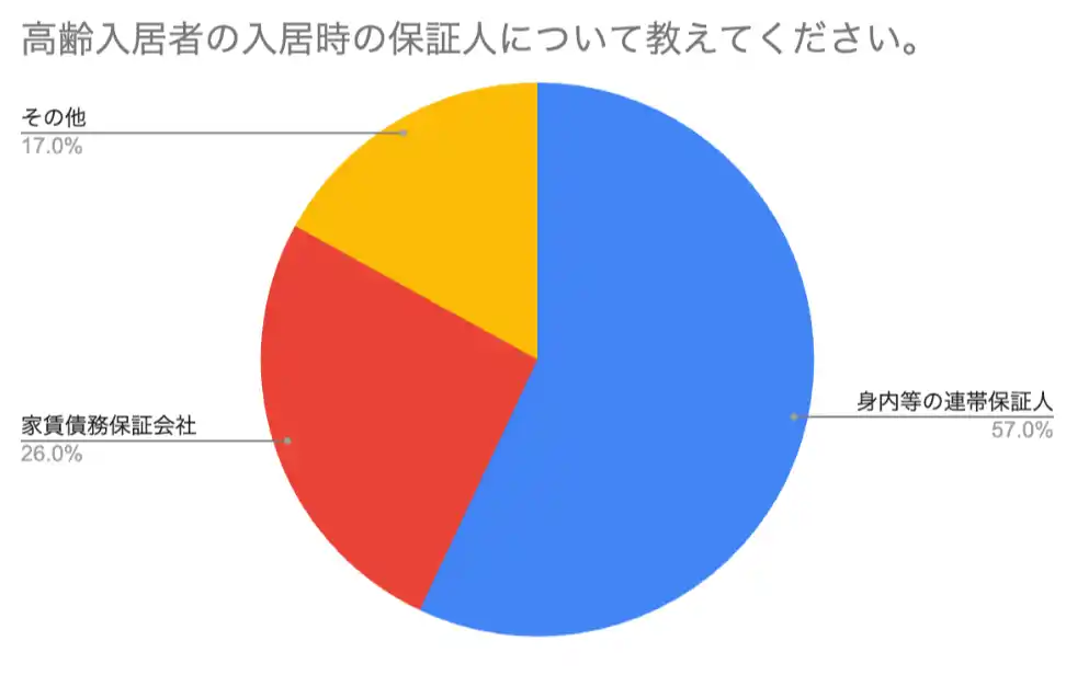 高齢者入居時の保証人は「身内等の連帯保証人」が約6割、保証会社の利用は約4分の1に。 |