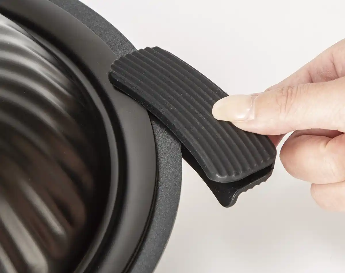 さらに、持ち運びに便利な取り外し可能なシリコーン取っ手が付属しており、食卓への移動や収納時にも扱いやすい仕様です。 |