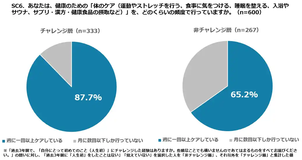 ⚫「人生初」に積極的に取り組んでいる層の87.7%が、週1回以上のセルフケアを実施 |