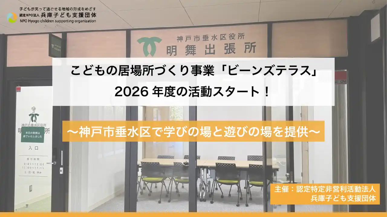 | 認定NPO法人兵庫子ども支援団体(所在地:兵庫県明石市、代表理事:多田実乘、以下「当法人」という)は、どもの居場所づくり事業として実施している「ビーンズテラス」の新年度の活動を2026年4月11日(土)から開始いたします。 | |||