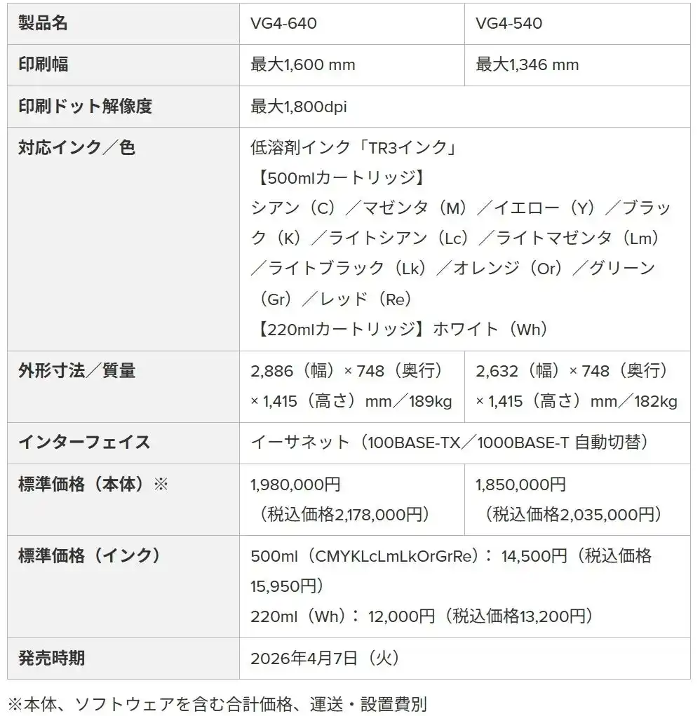ディー.ジー.株式会社は、最高レベルの出力をよりスマートに実現することをコンセプトに開発された大判インクジェットプリンターTrueVis(トゥルービズ)シリーズの新製品「VG4シリーズVG4-640/VG4-540」の2機種を発表いたします。 TrueVisシリーズは、広告・看板などのサイングラフィック製作に最適な当社大判インクジェットプリンターの主力製品群です。 その最大の特長である「見る人の心を動かす圧倒的な表現力」は、2016年の発売以来、世界中のプロの方々から高い支持を得ています。 新製品VG4-640/VG4-540は、その優れた表現力にさらに磨きをかけると共に、より正確な色再現性や、先進的な自動化機能と操作性による大幅な作業効率の向上を実現したシリーズ最新モデルとなります。 進化したTrueVisシリーズの表現力 微細なインク滴を高密度に吐出する新開発のプリントヘッドを搭載。 当社独自の印刷設定「True Rich Color(トゥルーリッチカラー)」との組み合わせにより、鮮やかな色彩と、ニュートラルなグレーや滑らかなグラデーション、自然な肌色などを両立したハイレベルな表現を可能にします。 使用するインクには、化学物質のガンマブチロラクトンを含まないGBLフリー対応の新しい「TR3インク」を採用。これまでのCMYKLcLmOrGrWhの9色に、新たにライトブラックとレッドを追加。環境に配慮しながらも、ビビッドで豊かな色彩と、難しいブランドカラーも正確に表現する高い色再現性を実現しました。 (同シリーズのXG-640にも対応) また、ホワイトインクは従来に比べて※1印刷濃度が約1.3倍、印刷速度は約1.5倍を実現しており、ウィンドウグラフィック製作や、電飾などへの下地印刷も高濃度かつ高速に行うことができます。 最高品質を最短のオペレーションで TrueVisシリーズのハイクオリティな出力を、より短時間に効率よく実現するための数々の新機能も搭載。 まず、PC側で行っていた出力操作がプリンター本体で行えるようになりました。これにより、プリンター側の作業と、PC側の作業を切り離すことができるため、プリンターとPCを行き来する煩雑さを低減。また、メディアセットからプリントまでの業務と、デザインから出力設定までの業務にそれぞれ集中できる効率的な分業体制も構築可能に。 また、プリンターを遠隔操作できる「VersaWorks Remote(バーサワークス・リモート)」にも対応※2。データをクラウド上にアップロードするだけで、在宅勤務中や外出先など、離れた場所からでもオフィスと同じように出力が可能に。さらに、プリンター本体のサブ電源のオン/オフをはじめ、ヒーターのオン/オフやホワイトインクの循環、クリーニング、さらにはテストプリントまで遠隔操作できるため、例えば、出社前に自宅からの操作で必要な準備を事前に済ませておくことで、出力開始までの時間を極力短縮することができます。 Print & Cut機能もさらなる進化を遂げました。新開発の巻き取りコントロール機能は、メディアが床に触れないように巻き取りながらPrint & Cutを行うため、大量のラベルやステッカー制作も確実に効率よく行います。 さらに、macOSにも対応した最新の出力用RIPソフトウェア「VersaWorks 7」が、難しい色合わせに関する業務を強力にバックアップ。Wizard形式を採用した新しいカラーマッチング機能※3は、同じ機種のプリンター間の色の個体差を簡単に補正できるため、プリンターの経年変化の補正や、複数台のプリンターで分担して大量出力や大判出力をする際にも安定した色再現を実現します。また、他社プリンターとの間でも色合わせが可能に。メディアプロファイルの制作も、従来のように測色機専用のソフトウェアを使わず、測色機本体とVersaWorks 7内容の操作だけで完結するシンプルなプロセスに進化しました。 その他にも、直感的で迷わない操作性を持つカラー液晶パネルをはじめ、正確なメディアセットアップ機能や後加工の時間を短縮するミシン目シートカット機能、セルフメンテナンス機能の拡充など、作業の効率化を実現する数々の機能を採用しています。 当社グローバルセールス&マーケティング本部 本部長の二村 龍吾は「現在、大判インクジェットプリンターは世界中のサイングラフィック製作の現場に広く普及しており、クライアントからは“質の高い成果物を、より短時間で納品して欲しい”というニーズが年々高まっています。こうした状況を背景にスタートした新しいTrueVisの開発では、単にプリンターとしての高速出力を目指すのではなく、出力前後の工程や、近年のお客様の働き方の変化にも着目し、出力業務全体を俯瞰して、いかに最高レベルの成果物を迅速に提供できるかというテーマに挑みました。こうして誕生したVG4シリーズは、お客様のビジネスに革新と確かな競争力をもたらすソリューションであると確信しています」と述べました。 |