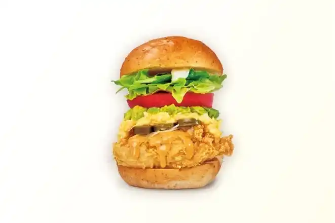「メキシカンエッグチキンバーガー」は、たまごフィリングのマイルドな味わいに、アボカドガカモレとハラペーニョの辛さをアクセントに加えた一品。ピリッとした辛さをたまごがやさしく包み込み、コブドレソースをかけたチキンと一緒に挟むことでバランスの取れた味わいに仕上げました。 |
