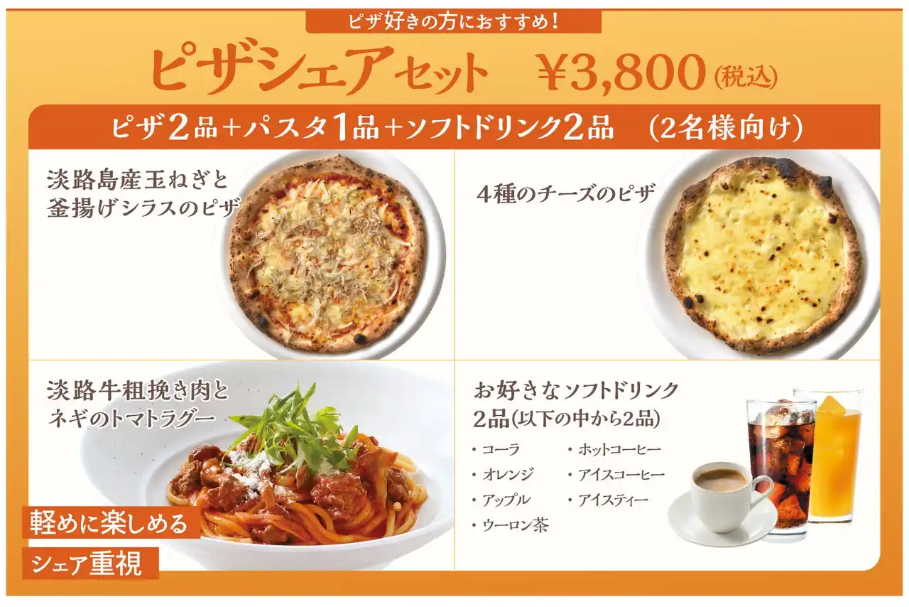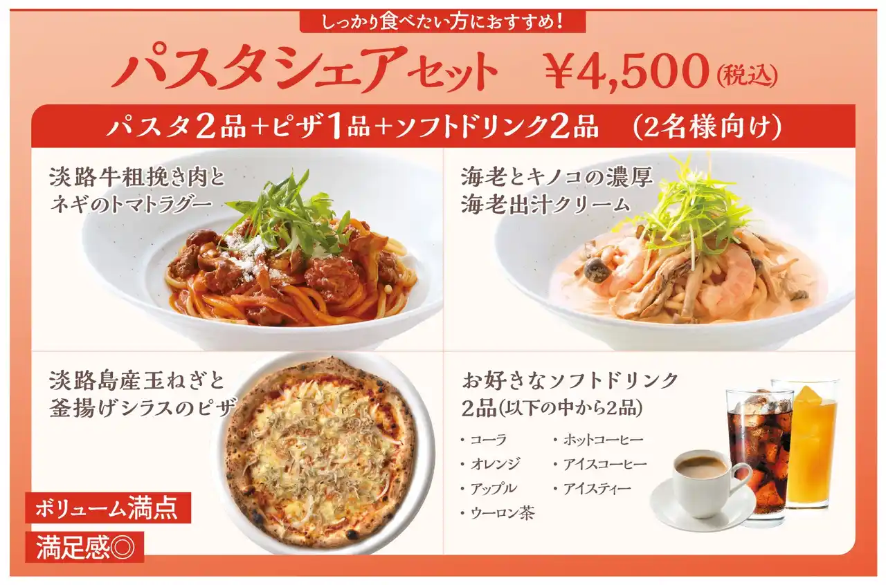 淡路島の玄関口に位置し、明石海峡大橋を眺めながら旬の食材を味わえるレストランや、特産品のショッピングを楽しめる淡路ハイウェイオアシス(運営:ユーアールエー株式会社/所在地:兵庫県淡路市大磯)の「淡路島生パスタと窯焼きピザ Trepici(トレピチ)」は、2026年月7日(火)より、春メニューおよび各種セットメニューの提供をスタートいたします。 |