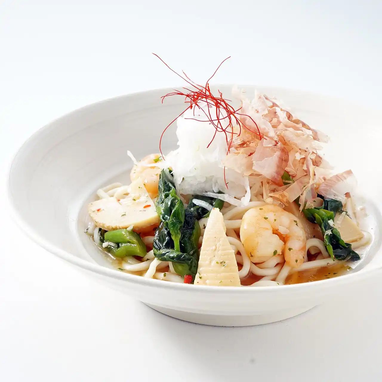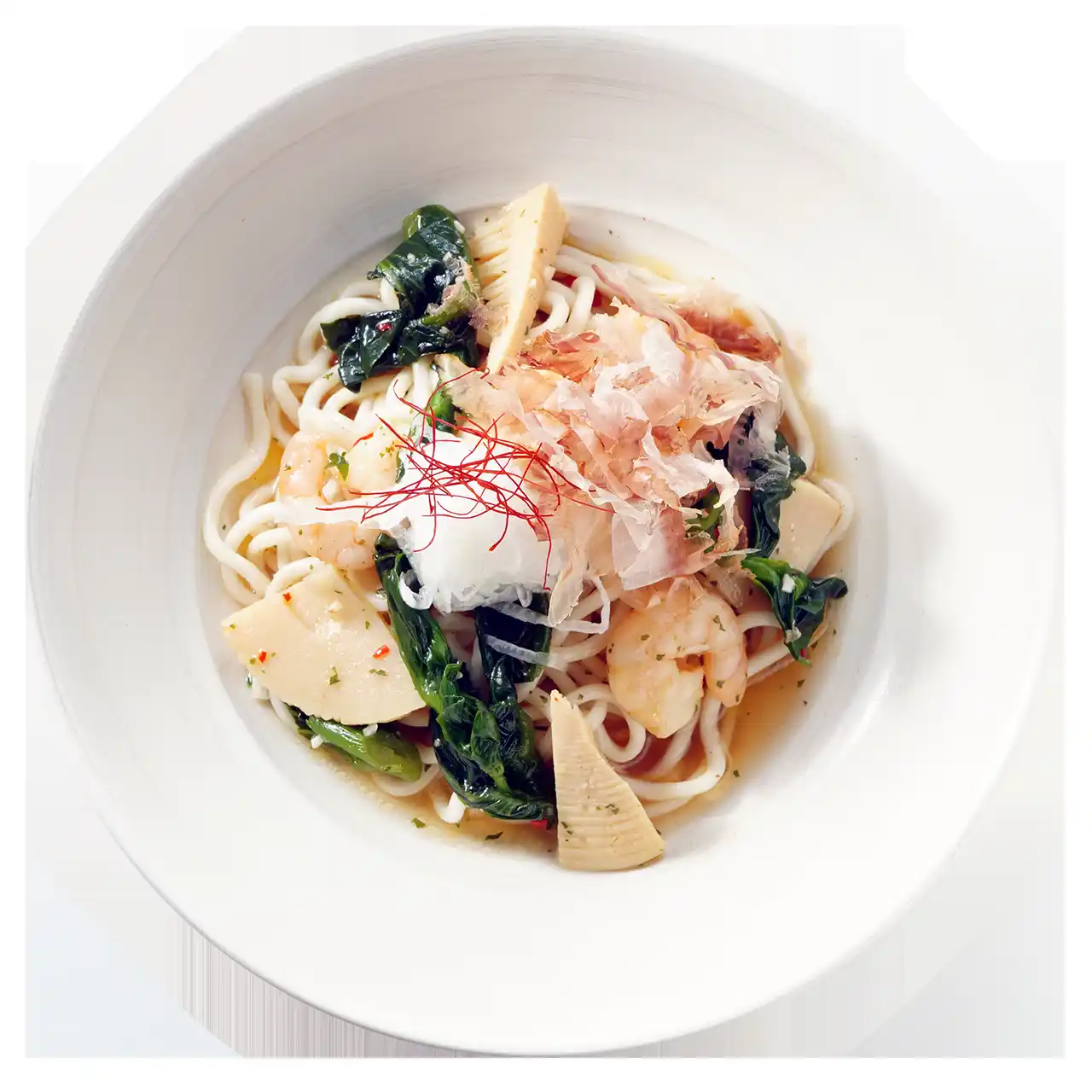 春の味覚であるタケノコと菜の花に、甘みの乗った新玉ねぎを合わせ、香ばしいにんにくと唐辛子で軽やかに仕上げた和風ペペロンチーノです。シャキッとしたタケノコの食感、菜の花のほろ苦さ、新玉ねぎのやさしい甘みが調和し、春ならではの香りが広がる一皿です。 |